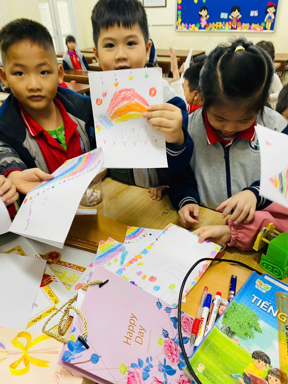 Nhân dịp kỷ niệm Ngày Nhà giáo Việt Nam 20/11, các em học sinh lớp 1A1 đã tham gia nhiều hoạt động ý nghĩa nhằm bày tỏ lòng tri ân đến thầy cô như thi đá bóng, biểu diễn văn nghệ. Làm thiếp chúc mừng. Tuy còn nhỏ, chưa biết thực hiện các hoạt động thật chỉn chu ,ngay ngắn nhưng các em đã háo hức gửi tặng những tấm thiệp nhiều màu sắc, chứa đựng bao lời chúc chân thành và tình cảm yêu thương ngây ngô và đáng yêu của trẻ thơ.
