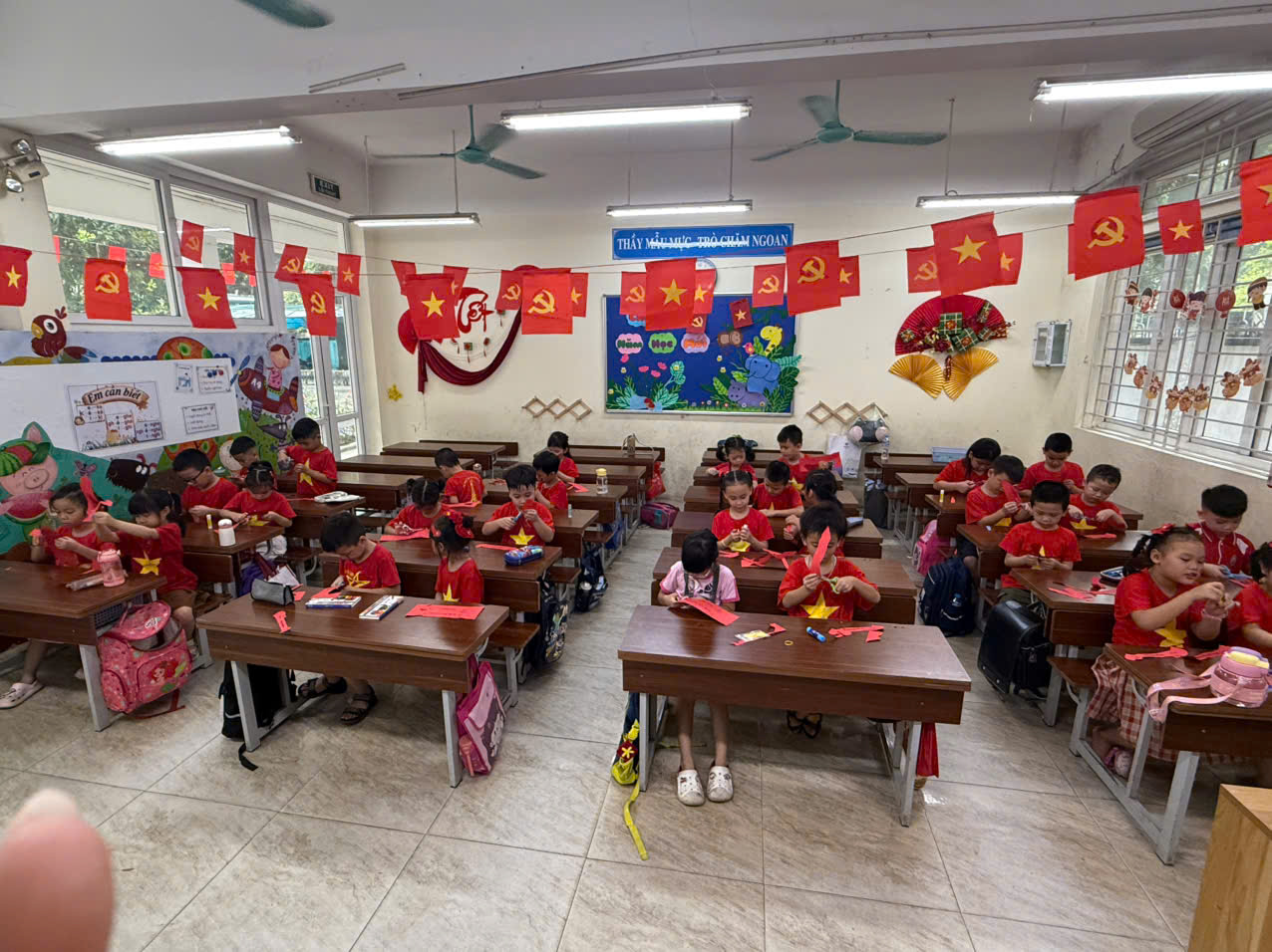 HS lớp 1A4 hào hứng tham gia những hoạt động sáng tạo đầu tiên chào mừng Quốc khánh 2/9