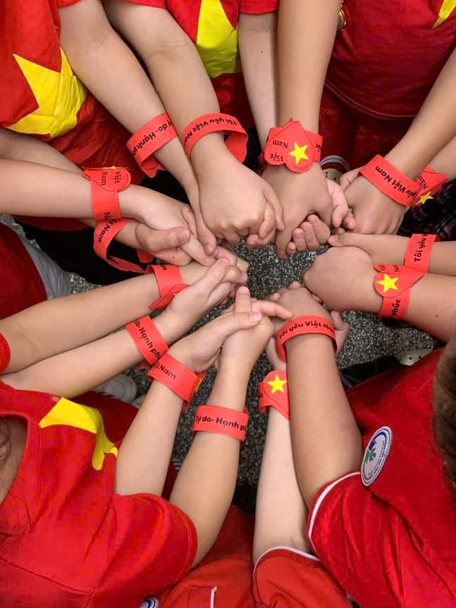 Hòa chung không khí tưng bừng kỷ niệm 80 năm Quốc khánh nước Cộng hòa Xã hội Chủ nghĩa Việt Nam (2/9/1945 – 2/9/2025), tập thể học sinh lớp 1A4 đã có những hoạt động ý nghĩa đầu tiên dưới mái trường tiểu học Ngọc Khánh thân y, gắn liền với tinh thần tự hào dân tộc. Đây cũng chính là trải nghiệm mở đầu cho hành trình học tập, vui chơi và sáng tạo của các em. Các em nhỏ đã tự tay làm những chiếc vòng tay cờ đỏ sao vàng rực rỡ, như một lời tri ân gửi tới Tổ quốc thân yêu. Từng sản phẩm tuy còn mộc mạc nhưng chứa đựng sự khéo léo, niềm vui và niềm tự hào hồn nhiên của lứa tuổi học trò. Bên cạnh đó, hoạt động tô tranh với chủ đề Quốc khánh 2/9 cũng mang lại nhiều trải nghiệm thú vị. Những bức tranh đầy màu sắc, hình ảnh lá cờ đỏ sao vàng tung bay, hình ảnh những người lính cùng các em học sinh tươi cười trong ngày Quốc khánh… đã được thể hiện sinh động qua đôi tay và trí tưởng tượng phong phú của các em. Hoạt động đầu tiên này không chỉ giúp học sinh lớp 1A4 hiểu thêm về ý nghĩa lịch sử của ngày Quốc khánh, mà còn khơi gợi lòng yêu nước, tinh thần đoàn kết và niềm tự hào khi được là con dân đất Việt.”