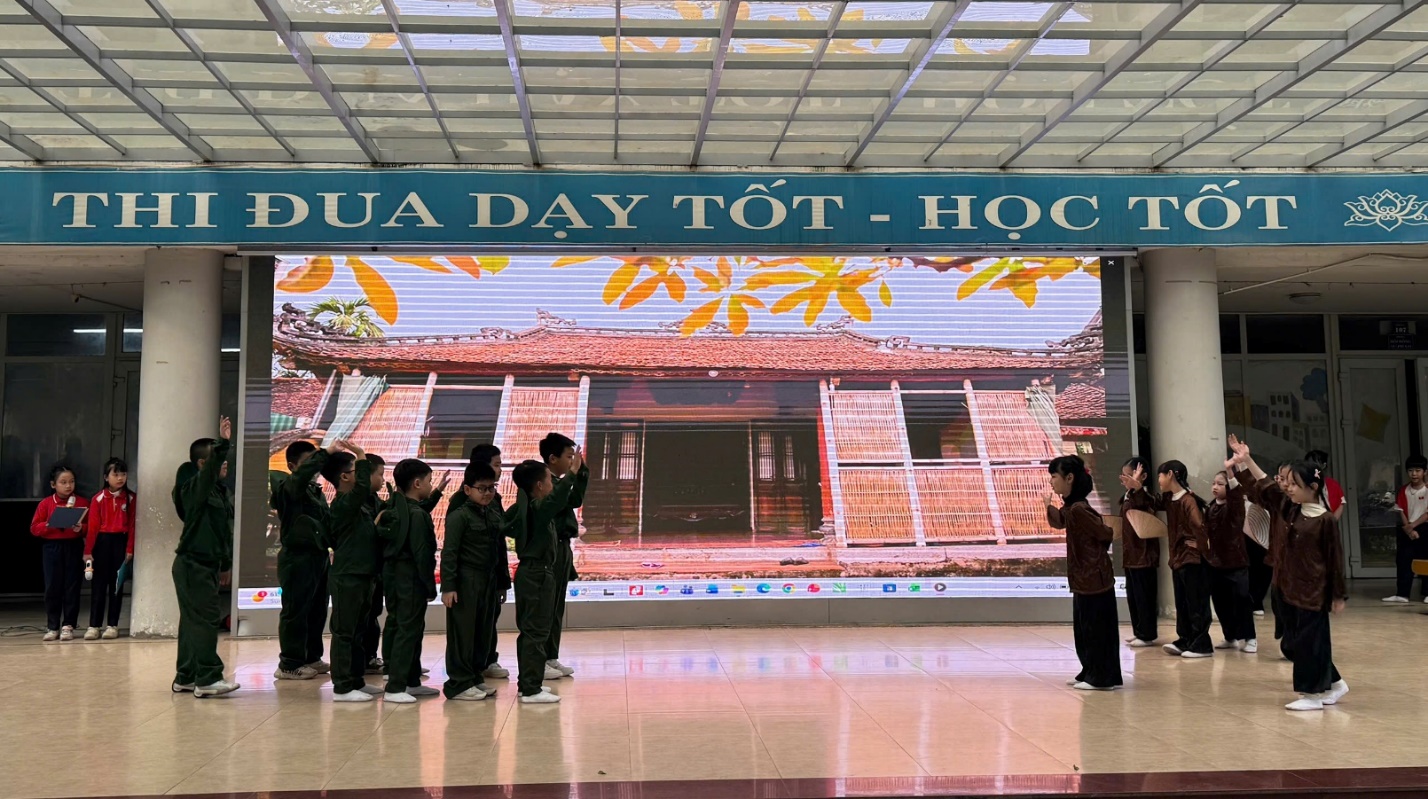 Tại buổi lễ, các bạn học sinh khối 3 đã biểu diễn những tiết mục văn nghệ đặc sắc, tái hiện lại khí thế hào hùng của cha ông. Những giai điệu tự hào vang lên không chỉ mang đến không khí vui tươi mà còn là bài học lịch sử sống động, nhẹ nhàng thấm sâu vào tâm hồn trẻ thơ. Qua đó, nhà trường mong muốn gieo vào lòng các em – những mầm non tương lai – tinh thần yêu nước, lòng biết ơn sâu sắc đối với các thế hệ cha anh và tình yêu thương đồng bào.