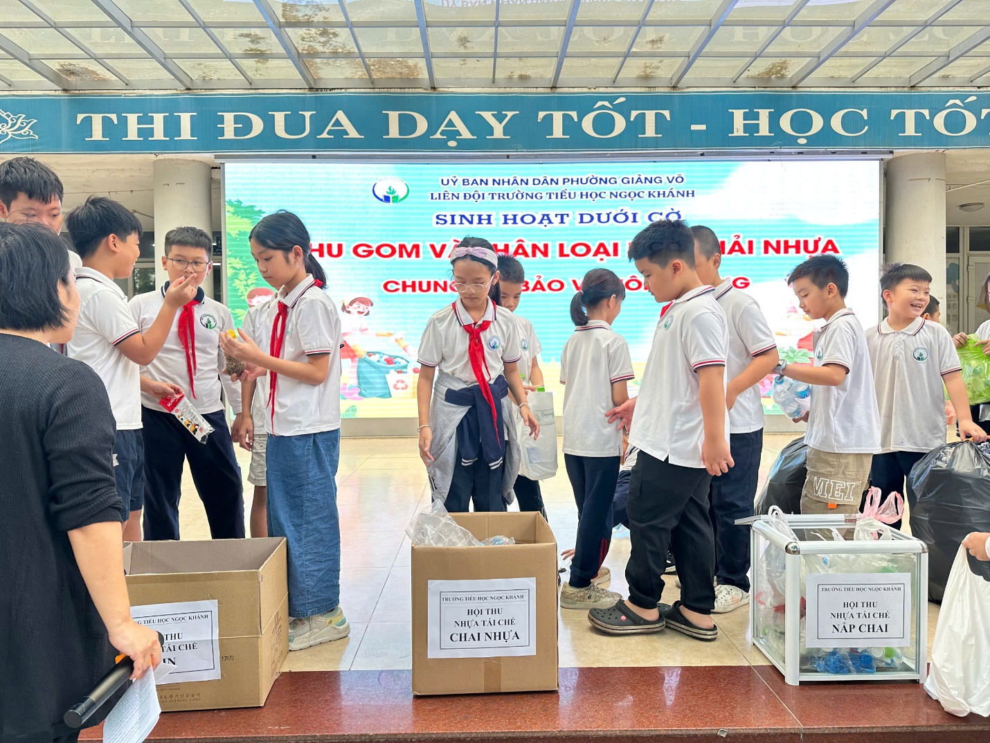 Sáng thứ Hai vừa qua, tại sân trường Tiểu học Ngọc Khánh, thầy cô và toàn thể học sinh đã tham dự tiết sinh hoạt dưới cờ với chủ đề: “Phân loại rác thải – Chung tay bảo vệ môi trường”.