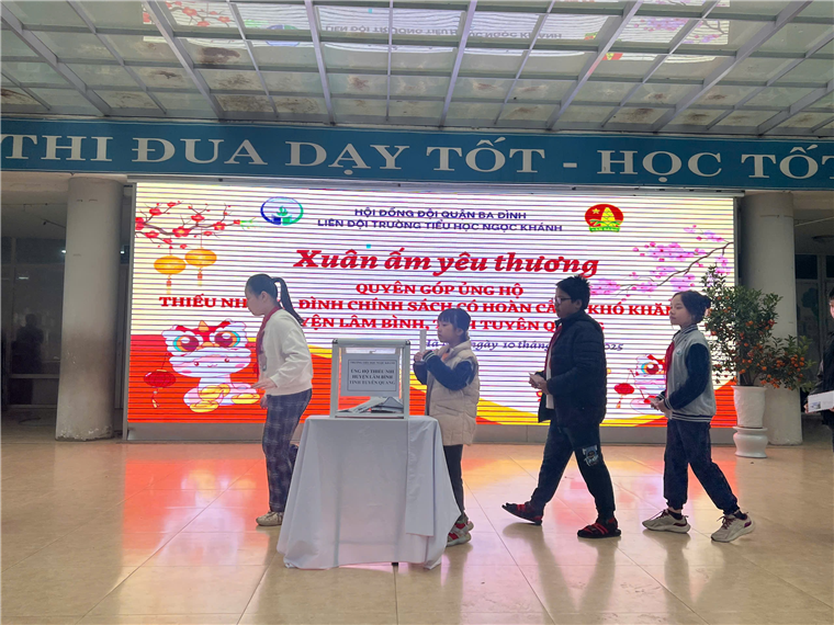 Sáng 10/2/2025, Liên đội trường Tiểu học Ngọc Khánh đã phát động chương trình ủng hộ từ thiện hỗ trợ các bạn học sinh, gia đình chính sách có hoàn cảnh khó khăn tại huyện Lâm Bình, tỉnh Tuyên Quang.