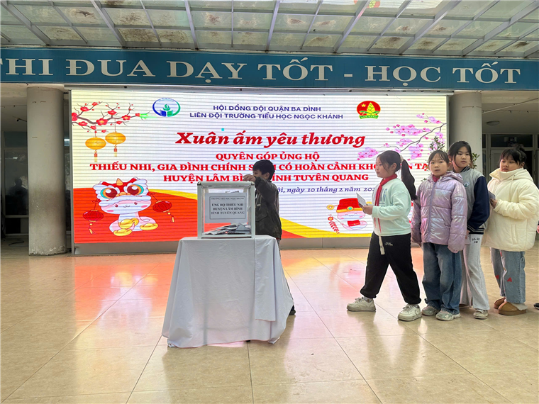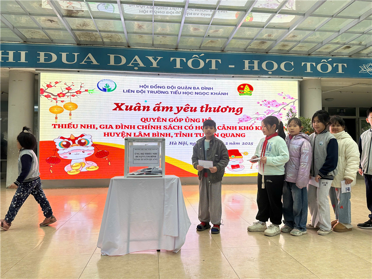 Sáng 10/2/2025, Liên đội trường Tiểu học Ngọc Khánh đã phát động chương trình ủng hộ từ thiện hỗ trợ các bạn học sinh, gia đình chính sách có hoàn cảnh khó khăn tại huyện Lâm Bình, tỉnh Tuyên Quang.