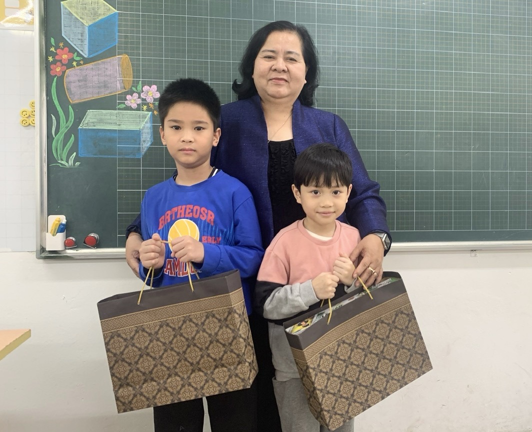 Đây là hình ảnh hai bạn và cô giáo chủ nhiệm lớp 2A2: