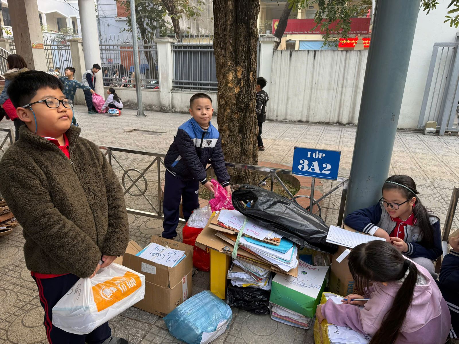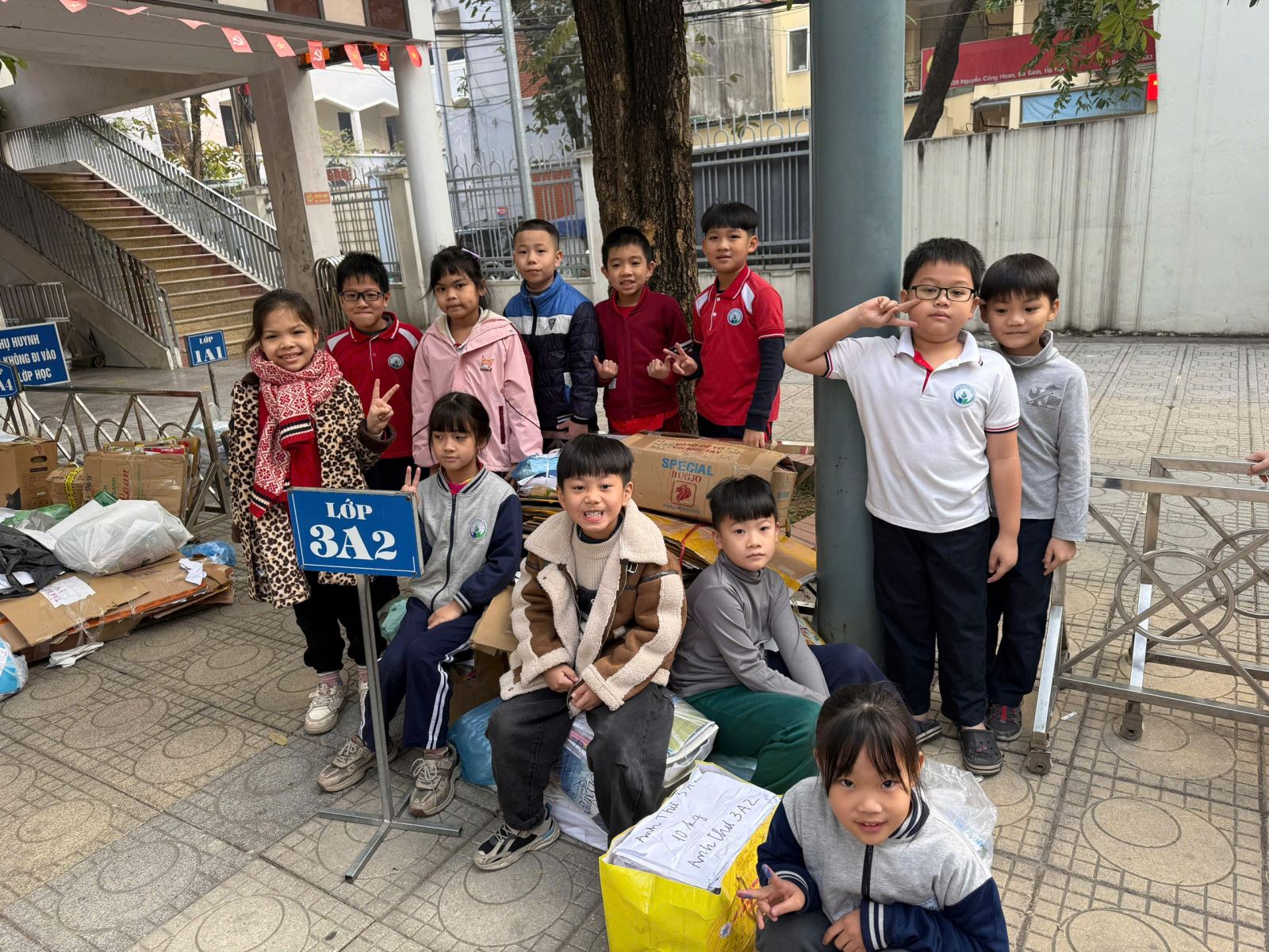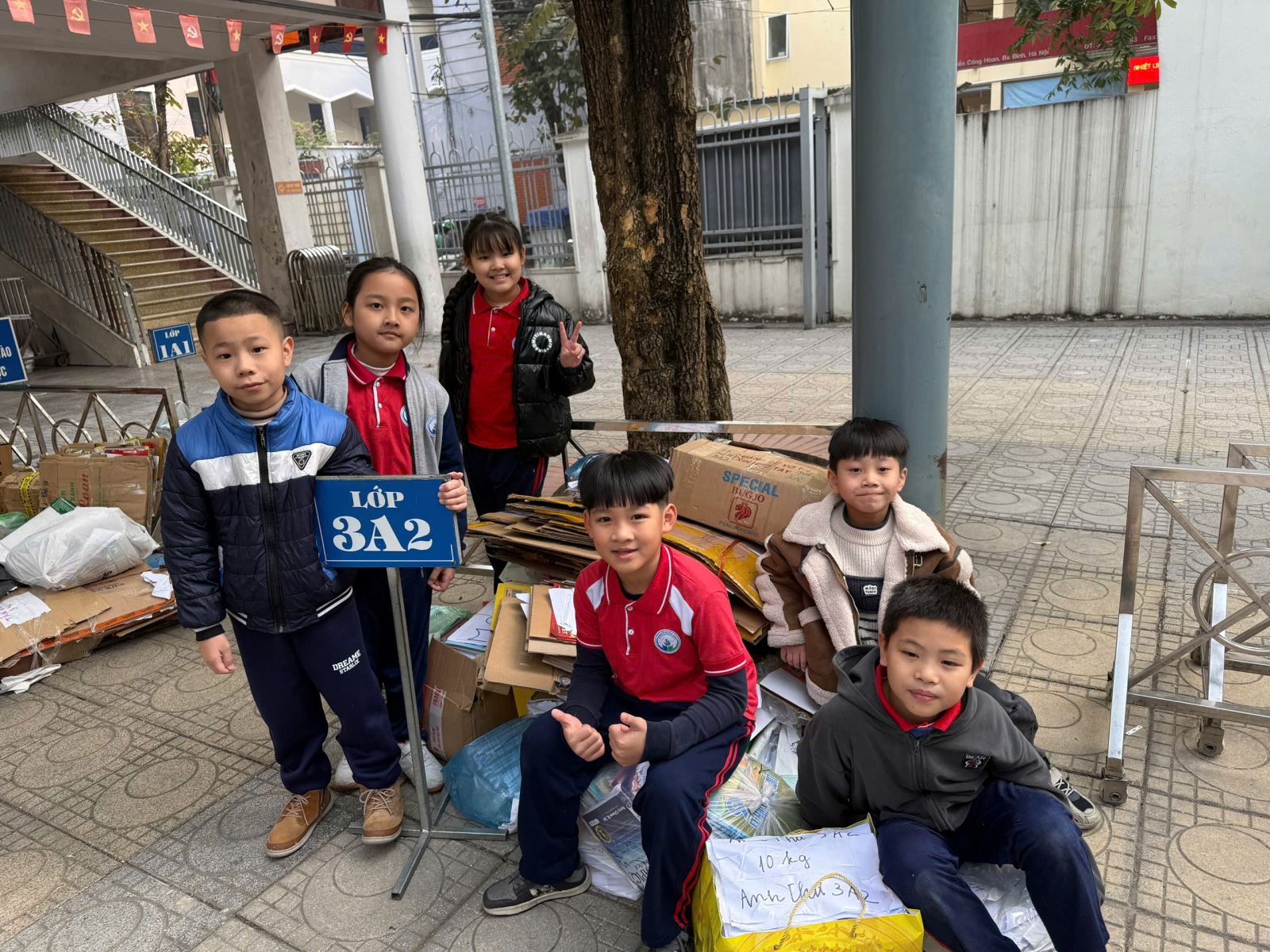 Trong những ngày vừa qua, các bạn học sinh lớp 3A2 đã tích cực tham gia hoạt động thu gom giấy vụn, chai nhựa, lon kim loại và các vật liệu tái chế khác. Từng nhóm học sinh cùng nhau sắp xếp, phân loại và đóng gói các vật liệu một cách gọn gàng, khoa học. Nhờ đó, các em không chỉ hiểu rõ hơn về giá trị của việc tái chế mà còn hình thành thói quen giữ gìn vệ sinh và bảo vệ môi trường ngay từ những việc nhỏ nhất.
