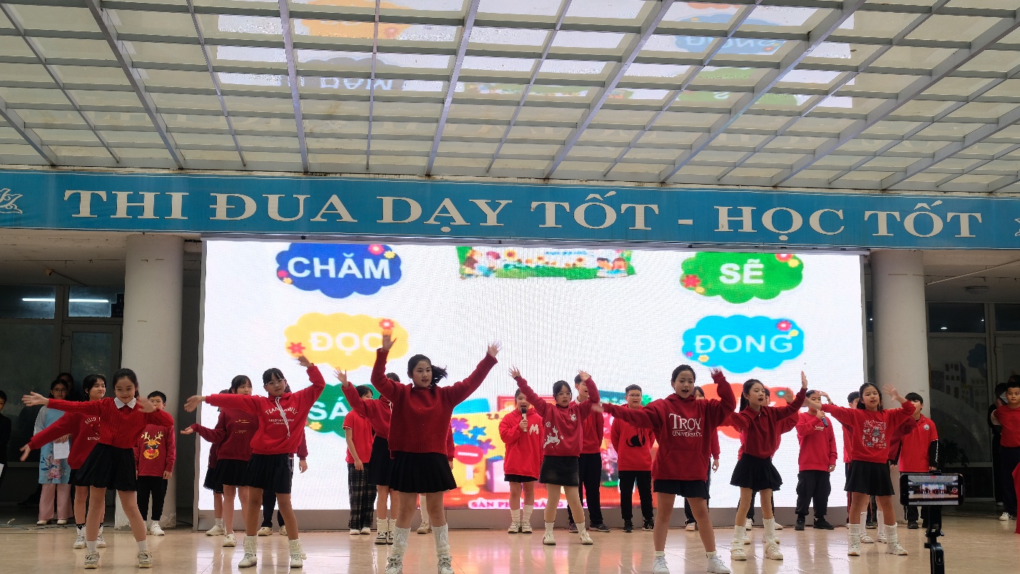 Đặc biệt, sân khấu dường như "bùng nổ" với các tiết mục văn nghệ và những điệu nhảy hiện đại trên nền nhạc Tiếng Anh sôi động. Những giai điệu vui tươi của năm mới đã khiến cả cô và trò cùng nhún nhảy, tiếp thêm nguồn năng lượng tích cực để sẵn sàng chào đón năm 2026 rực rỡ.