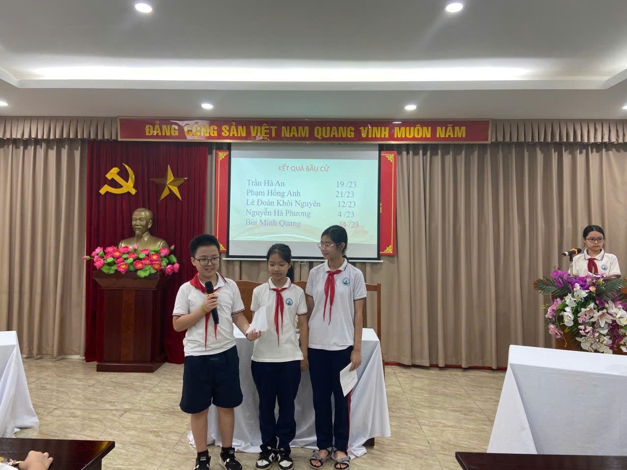 Sau một thời gian làm việc nghiêm túc với không khí khẩn trương và tích cực, các bạn học sinh đã bầu ra 3 bạn đội viên ưu tú vào Ban chỉ huy Chi đội 5A3, cũng như có nhiều ý kiến đóng góp cho bản dự thảo phương hướng công tác Đội nhiệm kì mới để thực hiện tốt chủ đề năm học: