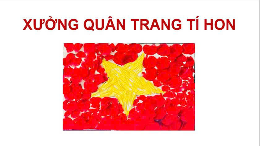 Tiếp sau đó là hoạt động “Xưởng quân trang tí hon”, với đôi bàn tay khéo léo các bạn học sinh lớp 2A4, các con đã tự hoàn thiện lá cờ đỏ sao vàng của mình thật ý nghĩa, trở thành những tác phẩm nghệ thuật nhỏ xinh thể hiện tình yêu quê hương đất nước.
