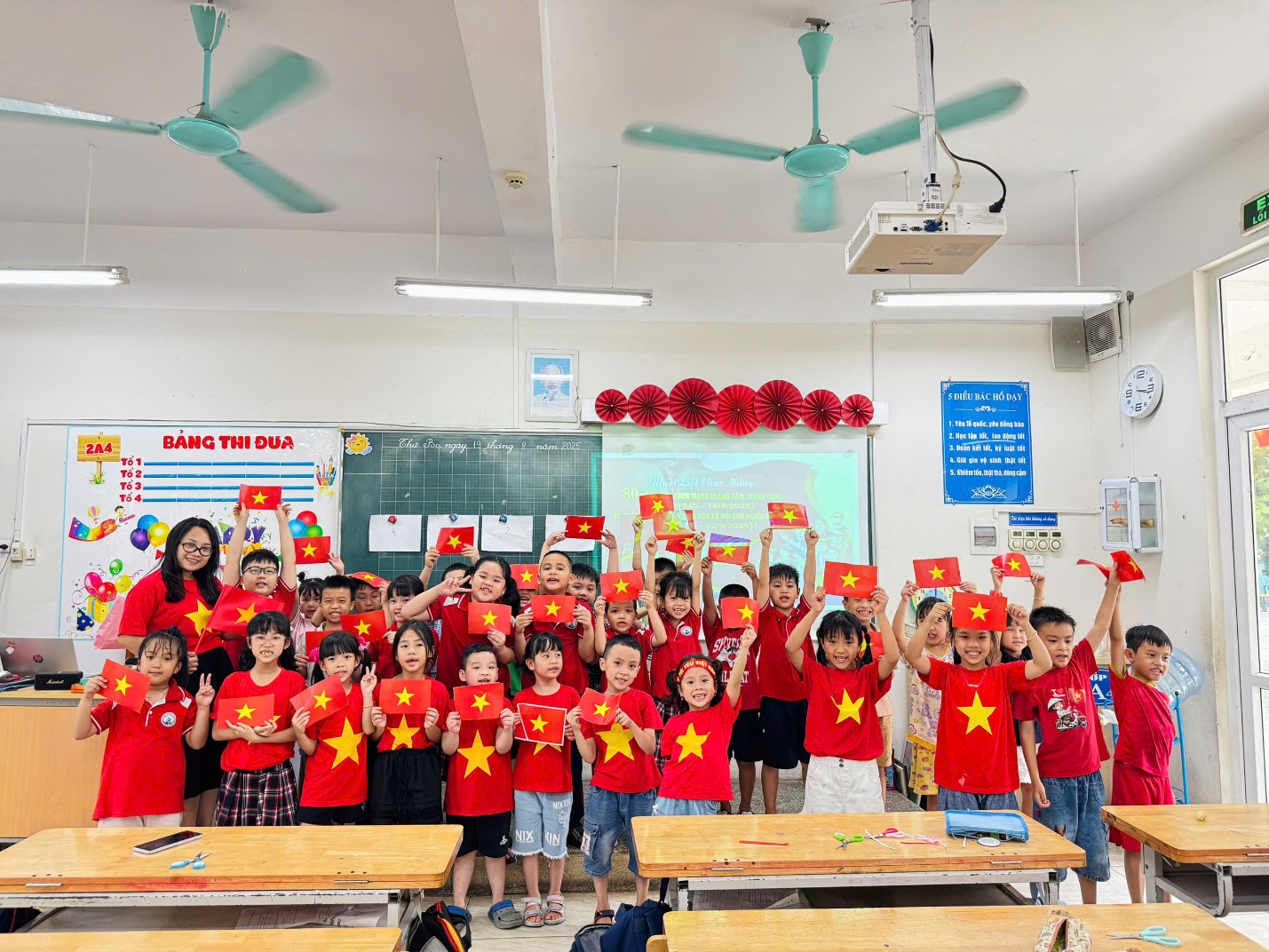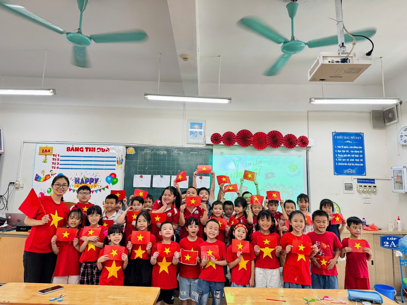 Hòa chung không khí tưng bừng, phấn khởi của cả nước kỷ niệm 80 năm ngày Cách mạng Tháng Tám (19/8/1945 – 19/8/2025) và Quốc khánh 2/9, cô và trò lớp 2A4, trường Tiểu học Ngọc Khánh đã tổ chức một số hoạt động ý nghĩa, bổ ích.