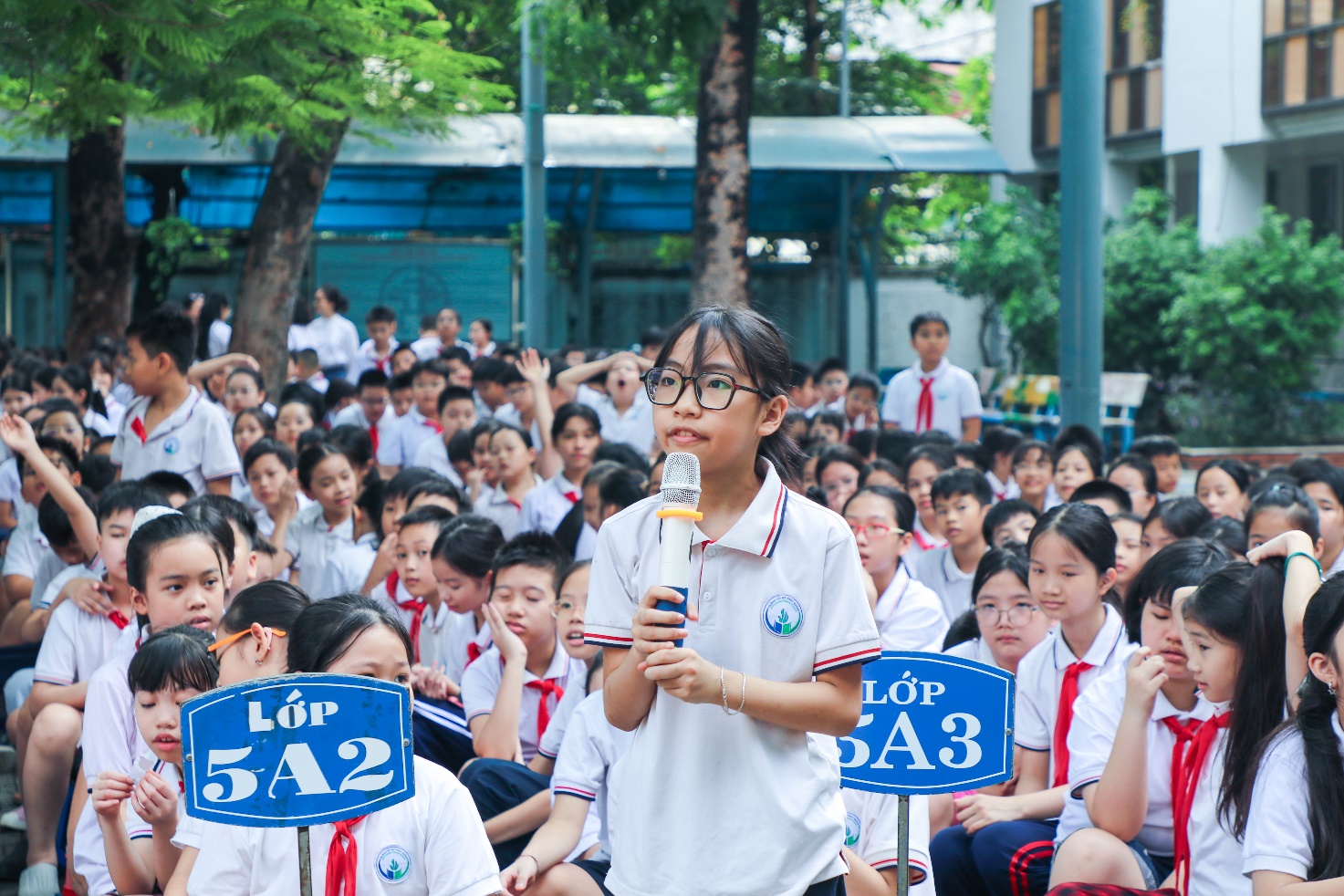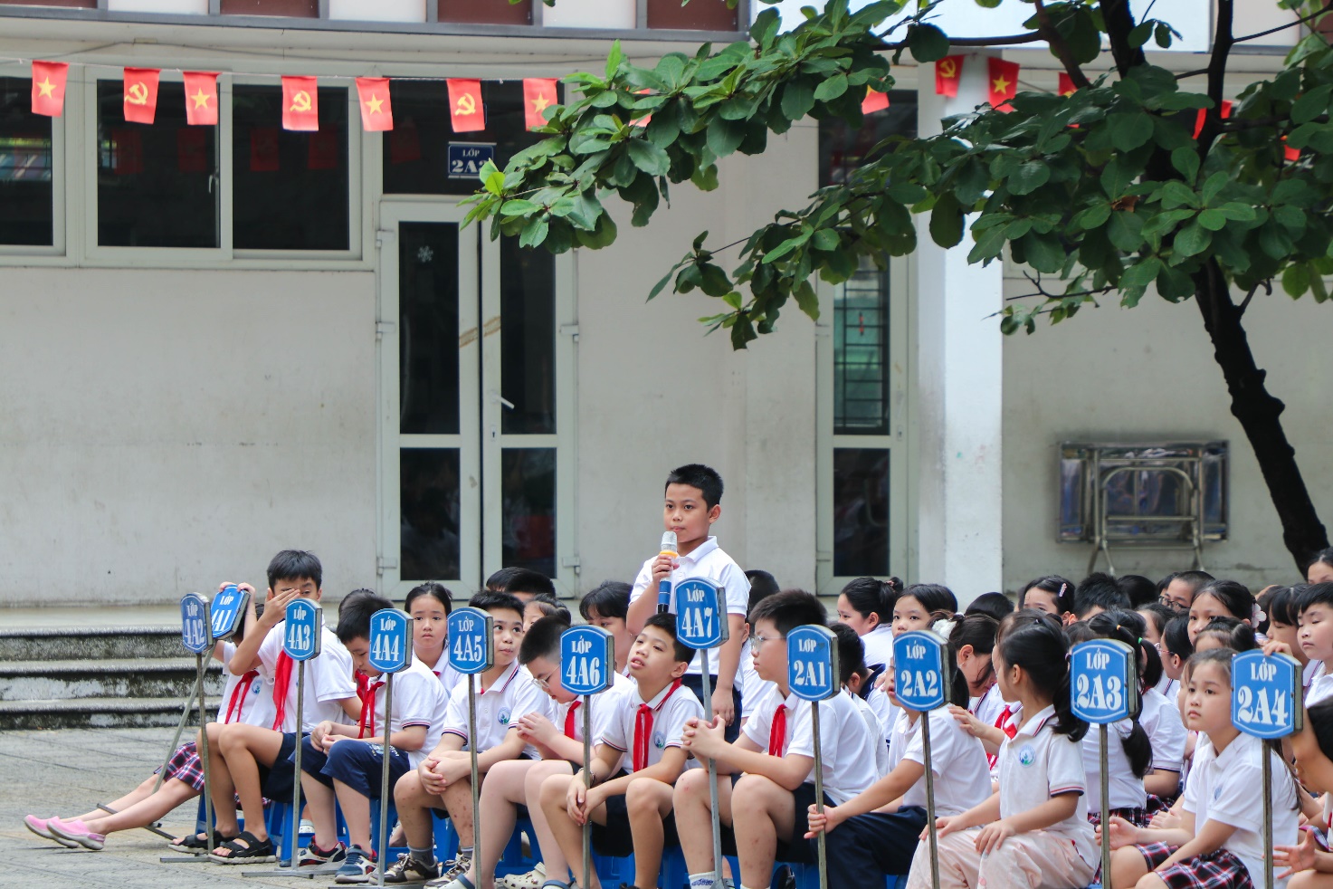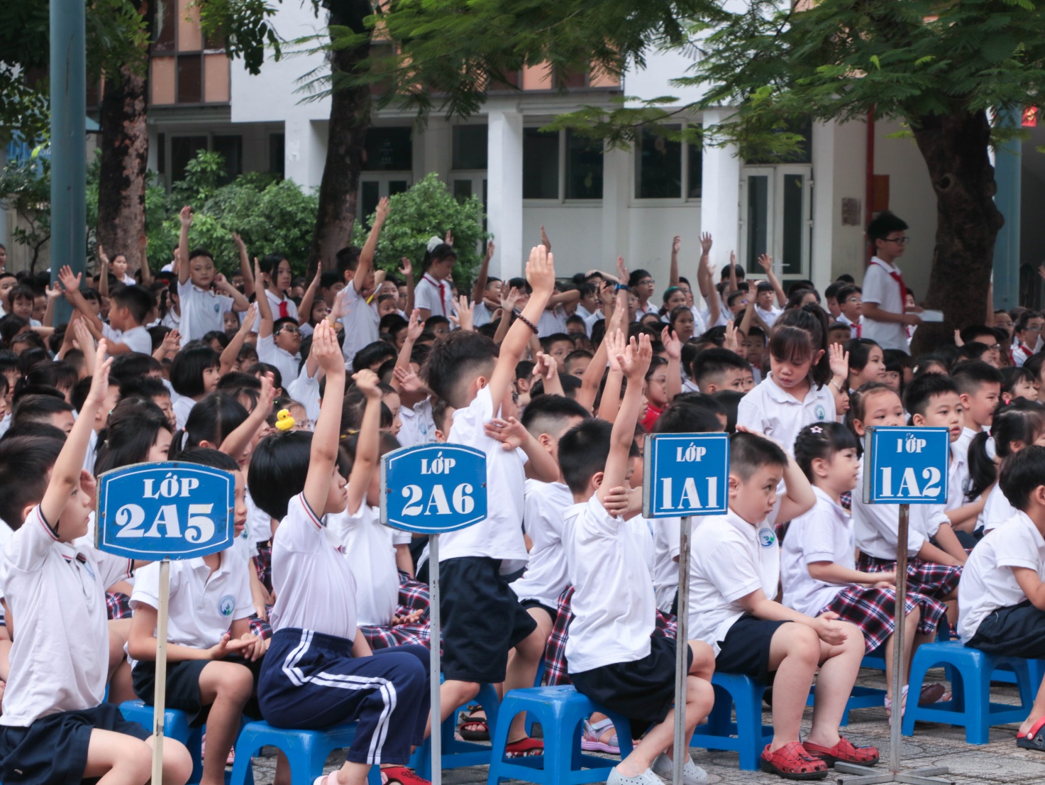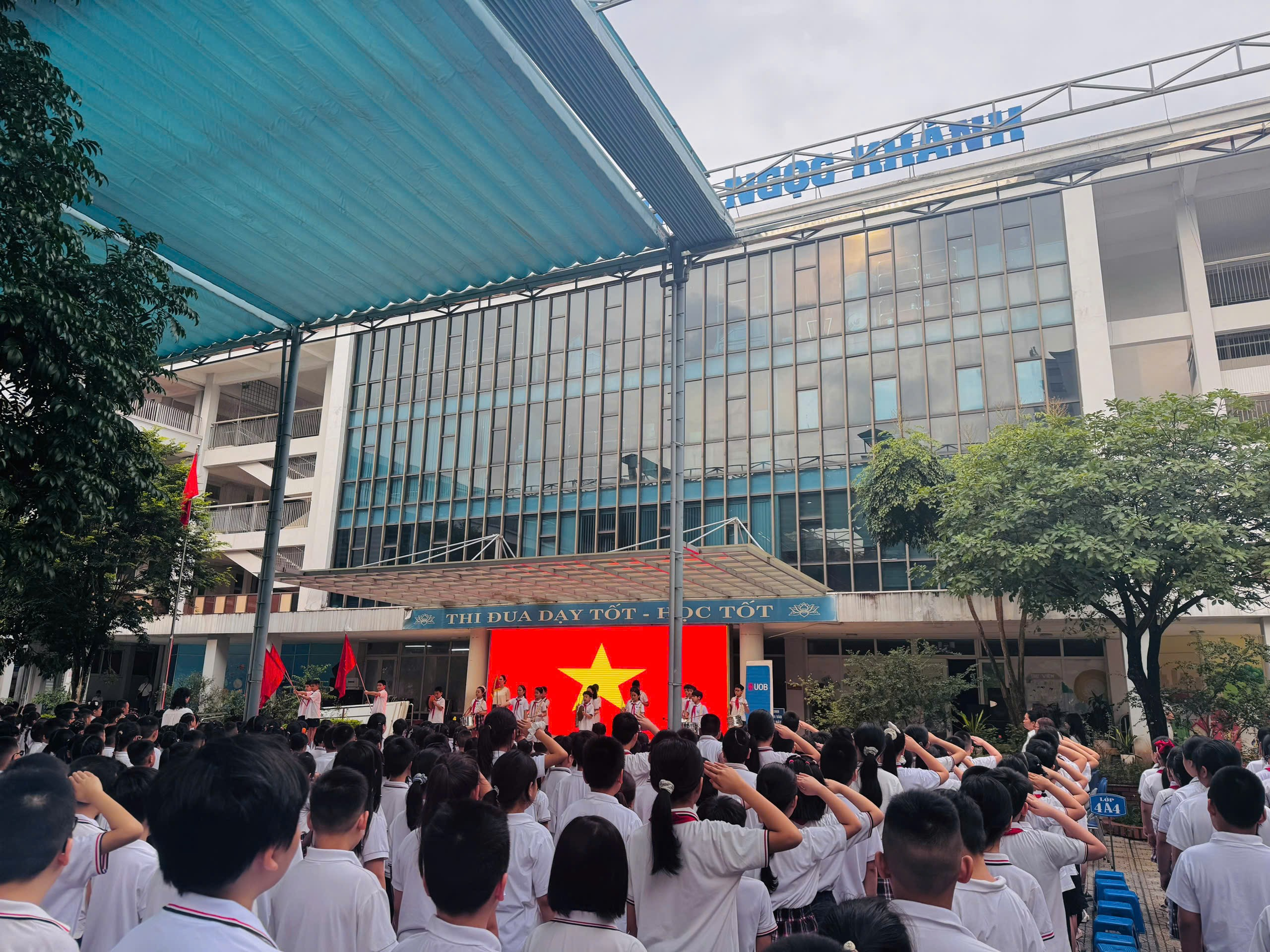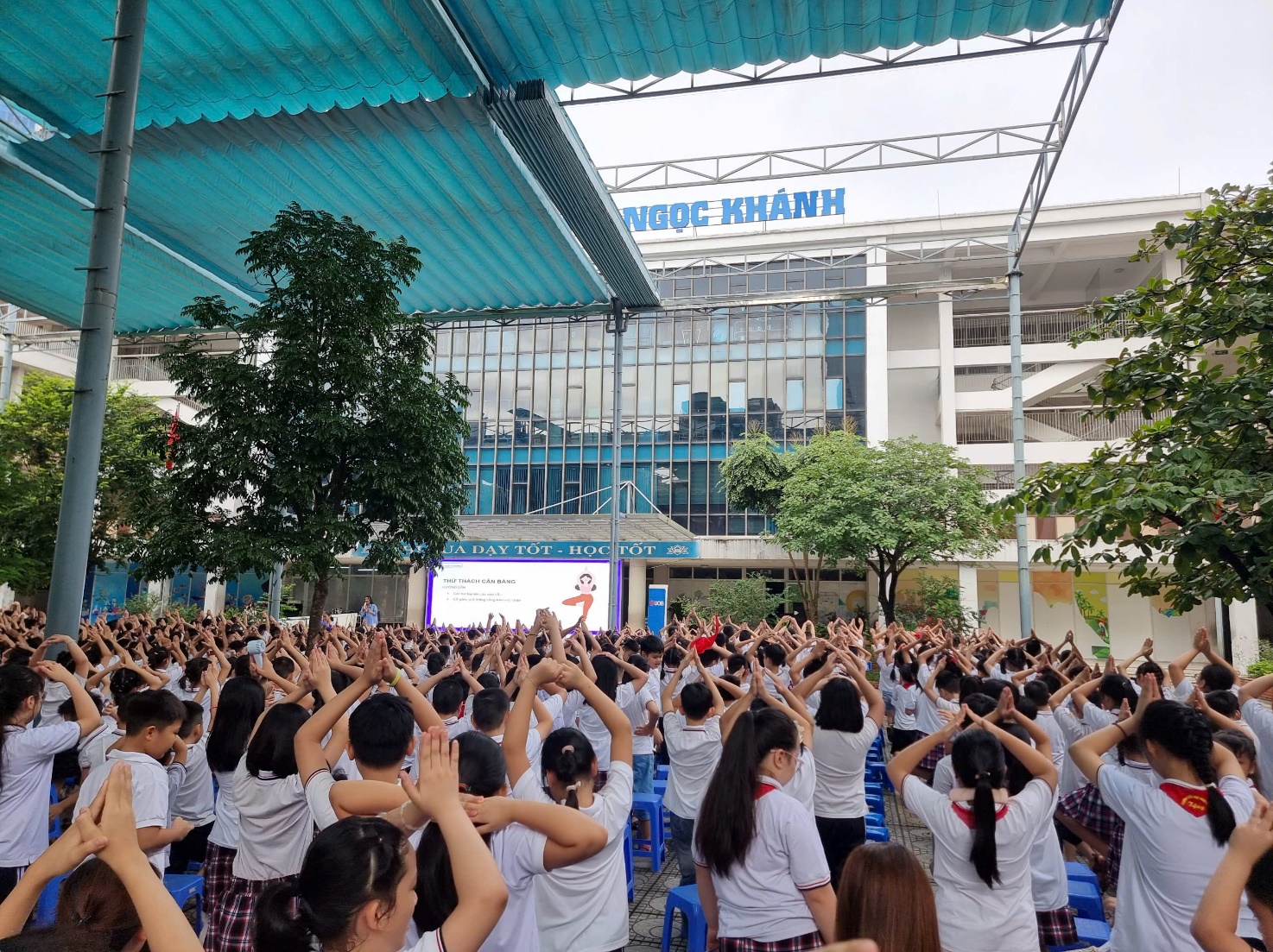 Dưới đây là một số hình ảnh giáo viên và học sinh trường Ngọc Khánh tham gia tiết sinh hoạt dưới cờ.