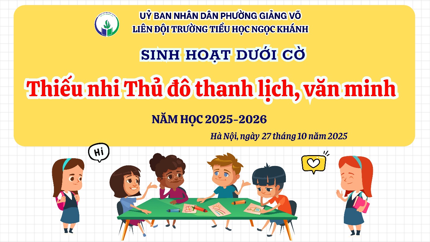 Sáng ngày 27/10/2025, Liên đội Tiểu học Ngọc Khánh tổ chức buổi sinh hoạt dưới cờ với chủ đề: “ Thiếu nhi Thủ đô thanh lịch, văn minh”
