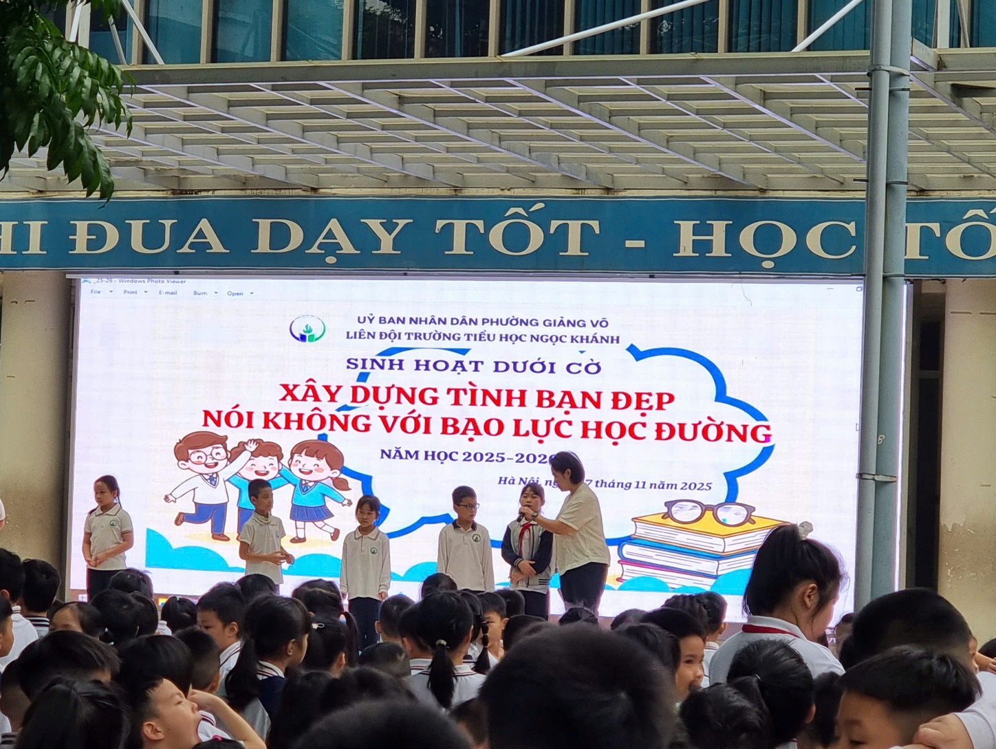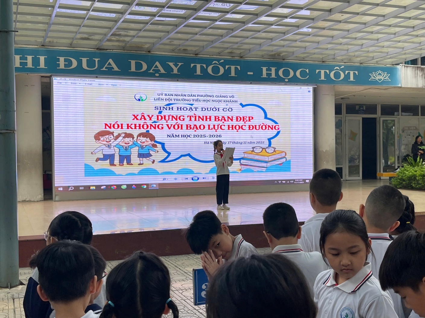 Trường học là một môi trường không những cung cấp cho chúng ta những kiến thức về khoa học, mà còn là nơi rèn luyện nhân cách đạo đức cho học sinh, mang đến cho các em một tâm hồn đẹp và trang bị cho các em một quan niệm đúng đắn về cuộc sống. Thế nhưng một điều nhức nhối đang diễn ra trong nhà trường, đó chính là nạn “Bạo lực học đường”. Vì vậy trong tiết sinh hoạt dưới cờ thứ hai ngày 17/11/2025 trường Tiểu học Ngọc Khánh đã tổ chức buổi sinh hoạt đầu tuần với chủ đề: “Xây dựng tình bạn đẹp – Nói không với bạo lực học đường”.