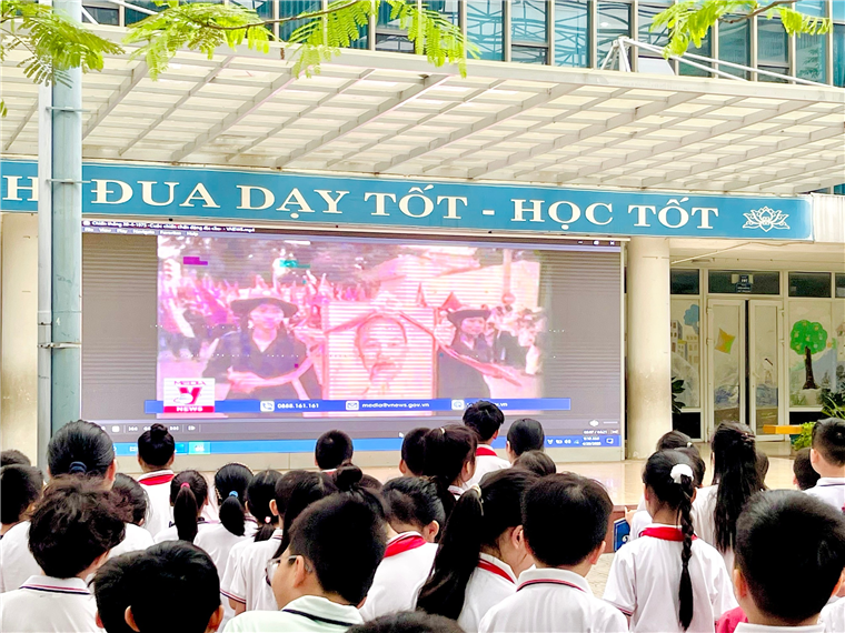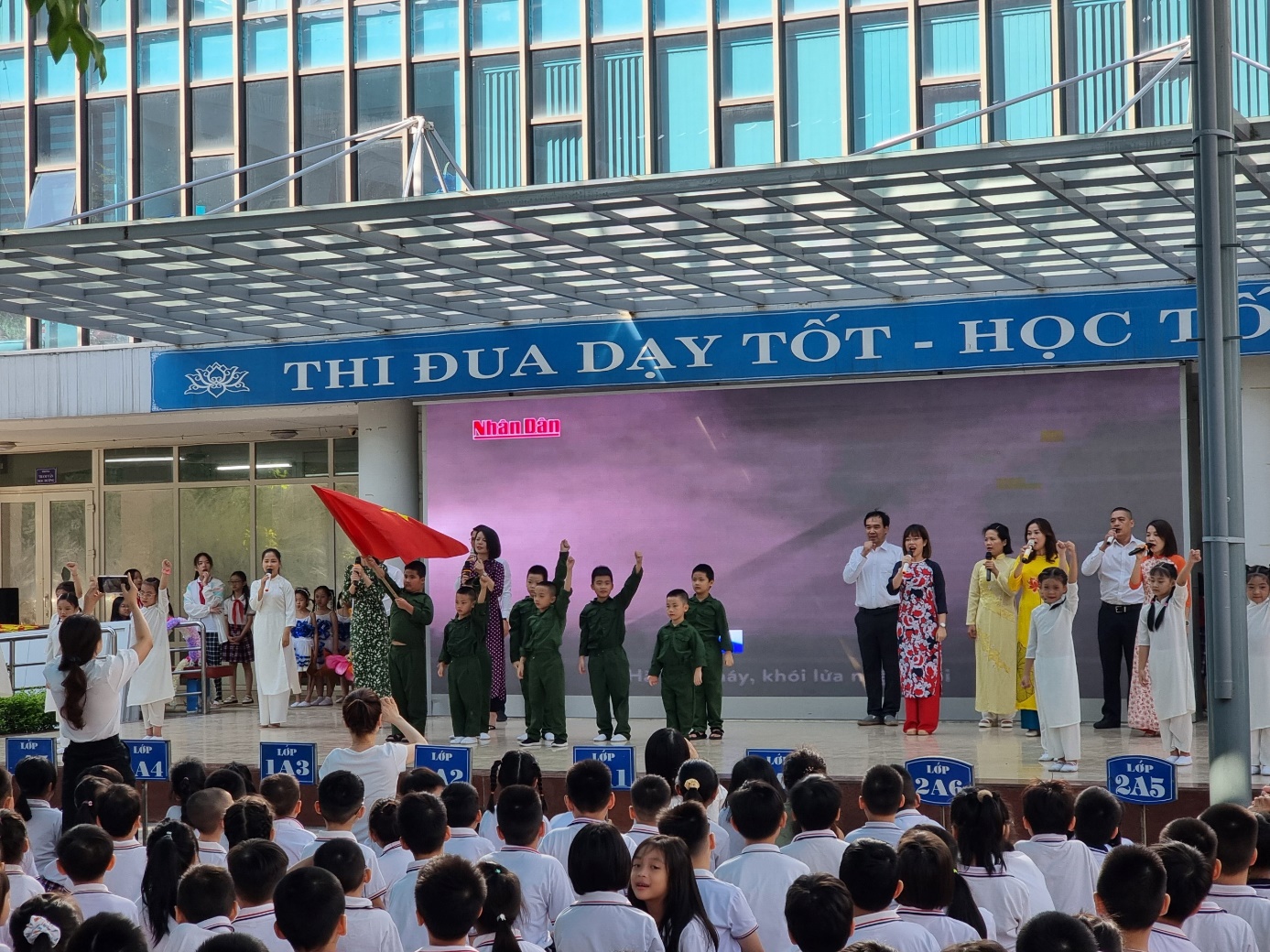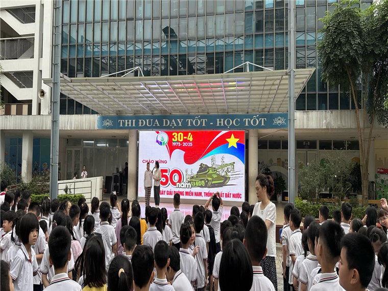Trường Tiểu học Ngọc Khánh rực rỡ trong khí thế hào hùng của buổi lễ kỉ niệm 50 năm ngày giải phóng miền Nam, thống nhất đất nước (30/4/1975 – 30/4/2025)