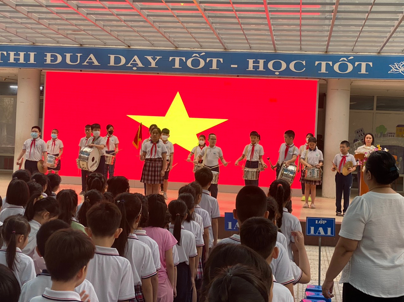 Chúng tớ rất háo hức đón chương trình chào cờ đầu tuần hôm nay |