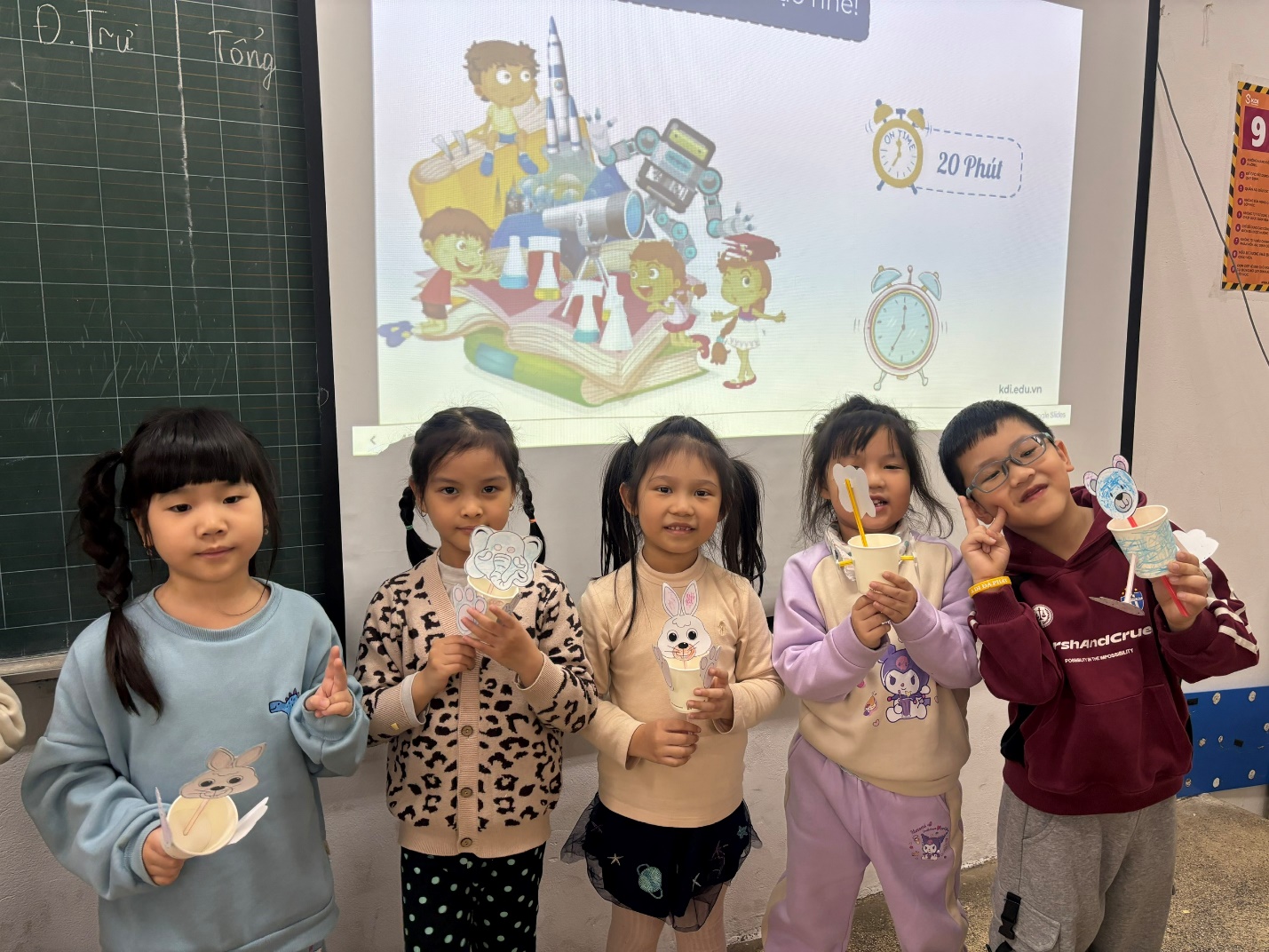 Các bạn nhỏ lớp 1A6 hào hứng với tiết học STEM.