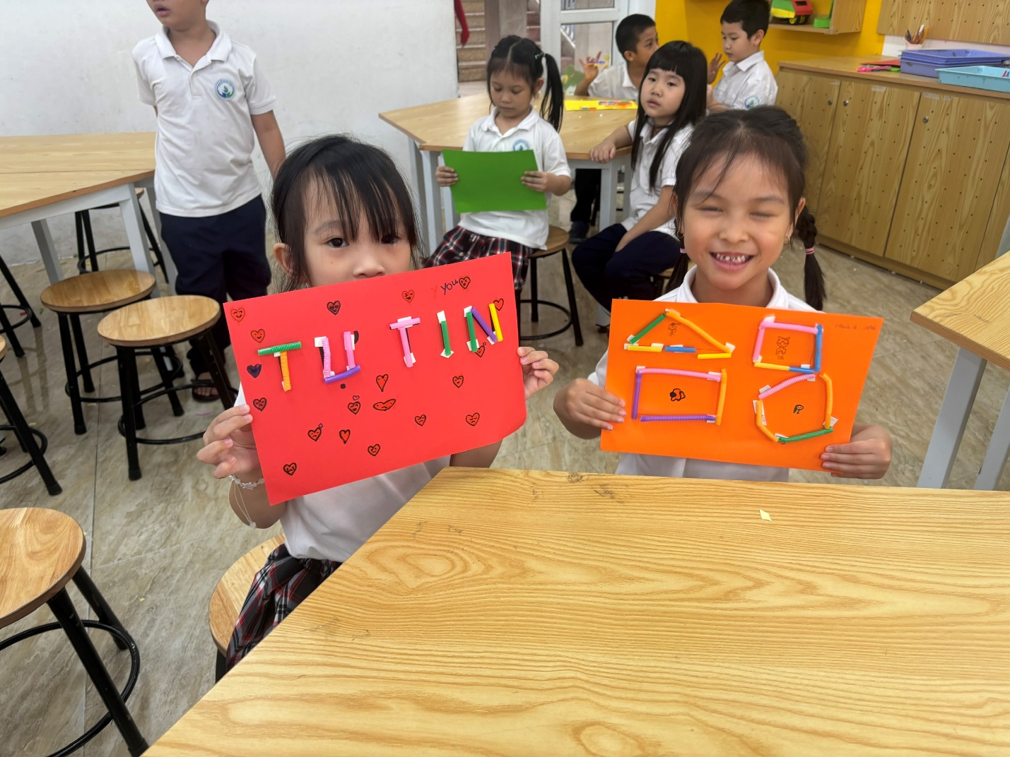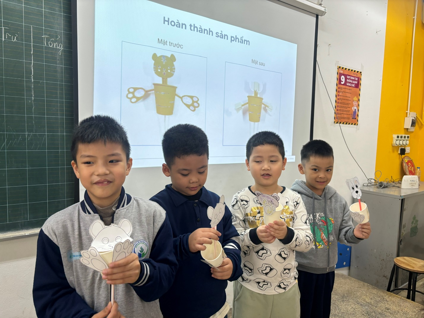 Các bạn học sinh lớp 1A6 rất vui vẻ và phấn khởi bởi các con vừa có những trải nghiệm thực tế mới mẻ. Các con được áp dụng kiến thức từ bài học để tạo ra sản phẩm của mình - những sản phẩm sử dụng được trong cuộc sống hằng ngày.