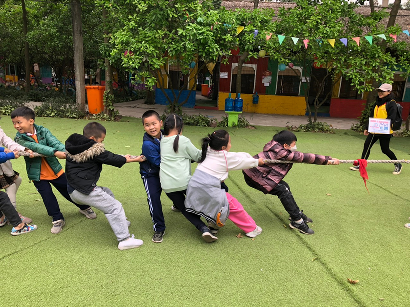 Bạn nhỏ nào cũng vô cùng háo hức và tham gia nhiệt tình vào các hoạt động, thậm chí còn quyến luyến chẳng muốn rời xa. Các nhóm còn được rèn luyện về sự đoàn kết, tinh thần làm việc nhóm, biết phân công công việc qua các hoạt động như kéo co, nhảy bao bố, đi cà kheo…