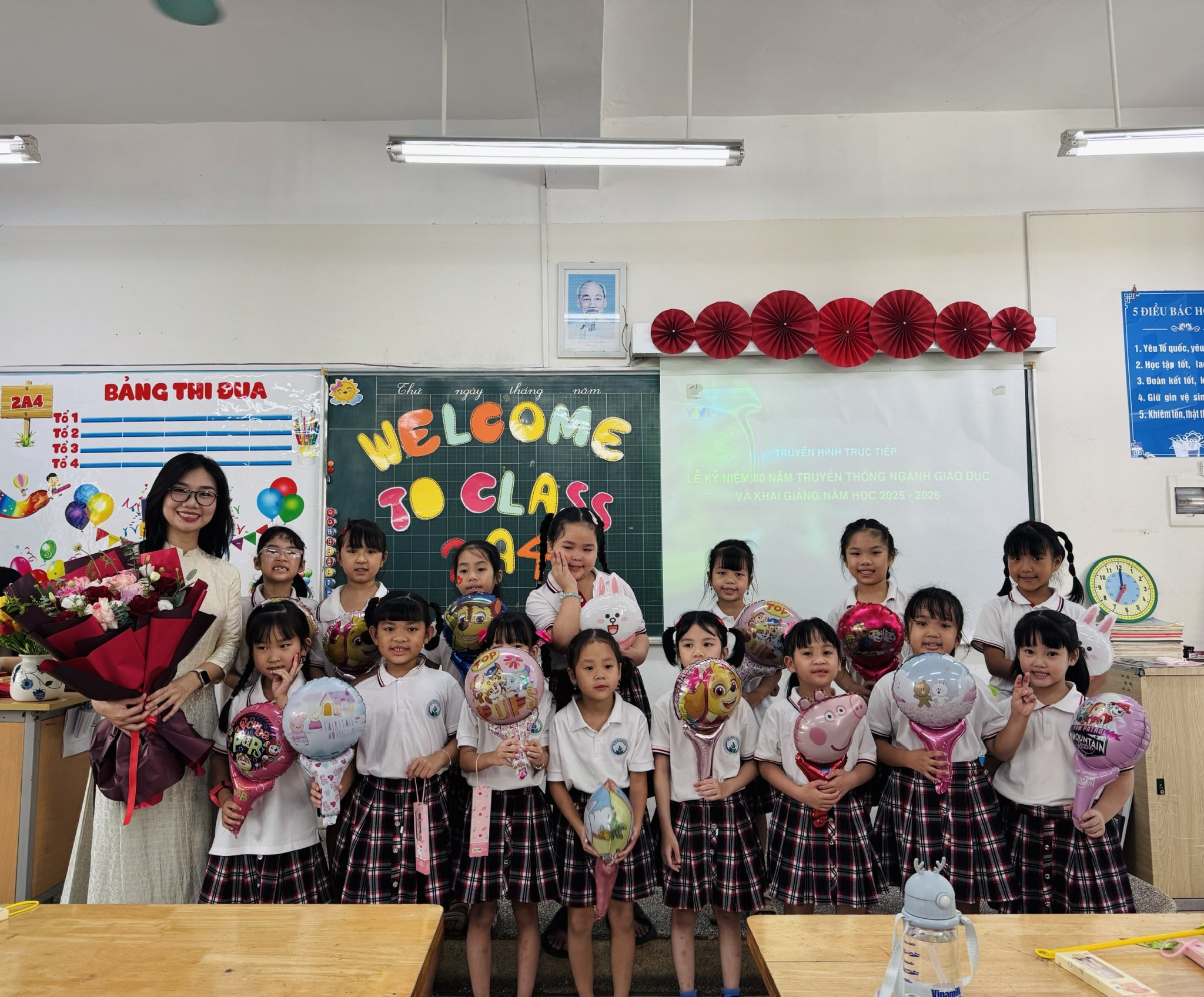 Lễ khai giảng năm học 2025-2026 cũng là dịp kỷ niệm 80 năm thành lập Bộ Quốc gia Giáo dục (nay là Bộ GD-ĐT), được tổ chức tại Trung tâm Hội nghị Quốc gia (Hà Nội) vào lúc 8 giờ - 9 giờ 30 phút, truyền hình trực tiếp trên kênh VTV1 và kết nối trực tuyến tới tất cả các cơ sở giáo dục từ mầm non đến đại học (công lập và ngoài công lập) trên cả nước. Lễ khai giảng năm nay được tổ chức theo hình thức đặc biệt và trọng thể nhằm khẳng định vai trò, vị thế và truyền thống lịch sử vẻ vang của ngành giáo dục, đồng thời lan tỏa tinh thần đổi mới, sáng tạo, hướng tới một năm học hiệu quả, chất lượng. Dưới đây là một số hình ảnh cô trò 2A4 dự Lễ khai giảng trực tuyến vào sáng ngày hôm nay: