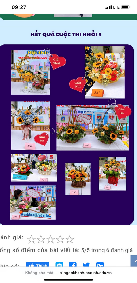 Dưới đây là kết quả cuộc thi ‘‘ Khéo tay hay làm’’ của lớp 5A4:
