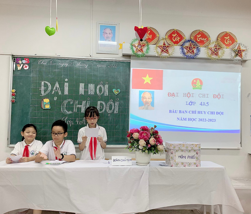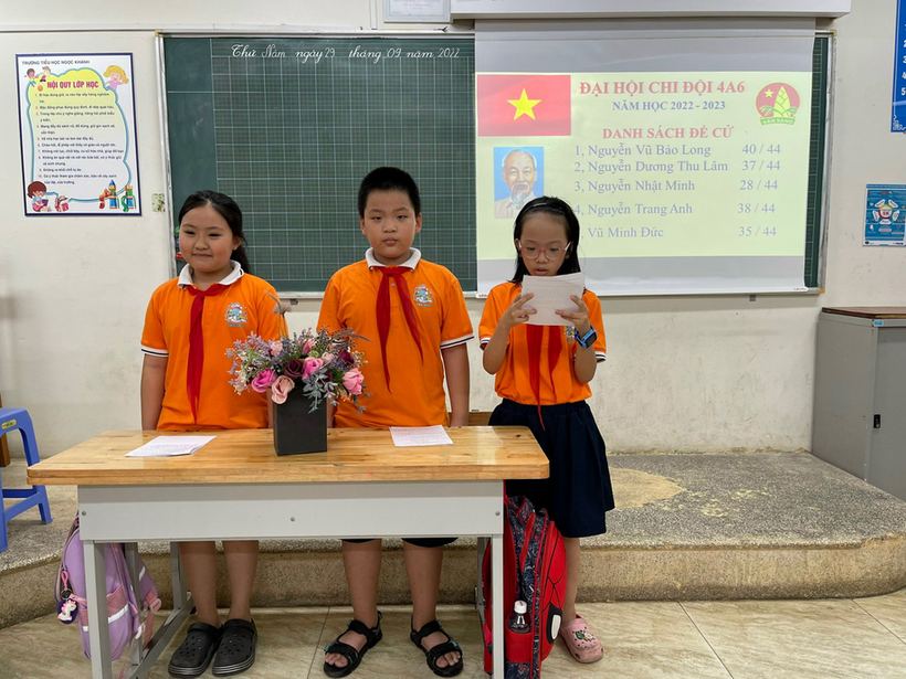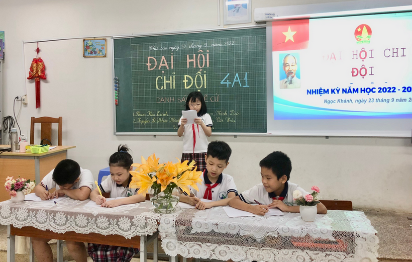 Thực hiện chương trình công tác Đội và phong trào thiếu nhi năm học 2022-2023 được sự đồng ý của Ban giám hiệu và Ban phụ trách thiếu nhi nhà trường ngày 29/9/2022 tập thể các lớp Khối 4 Trường Tiểu học Ngọc Khánh, quận Ba Đình đã hoàn thành Đại hội Chi Đội các lớp để chuẩn bị cho Đại hội Liên Đội.