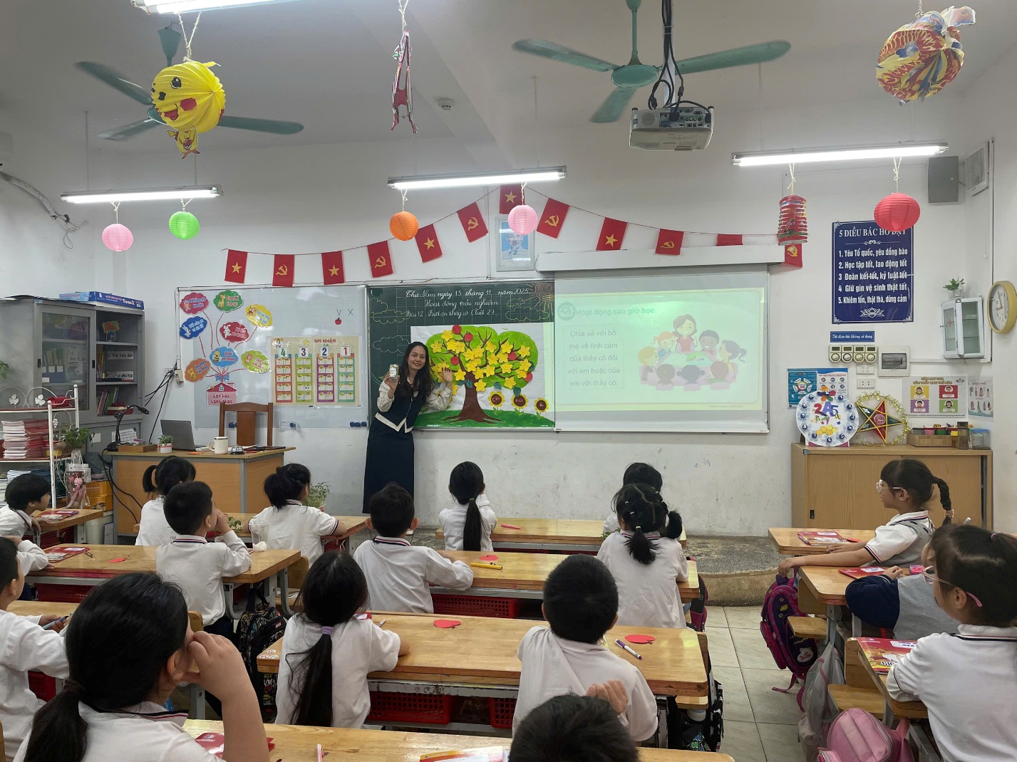Tiết chuyên đề “Biết ơn thầy cô” (tiết 2) do cô giáo Dương Hồng Nhung giảng dạy cho lớp 2A5 diễn ra trong không khí thật ấm áp và xúc động. Ngay từ đầu giờ, cô Nhung đã giúp các con ôn lại bài cũ và nhẹ nhàng dẫn dắt vào bài học mới bằng những câu chuyện cảm động về tình thầy trò. Qua tiết học, các con hiểu rằng lòng biết ơn không chỉ dành cho thầy cô – những người dạy dỗ mình mỗi ngày – mà còn dành cho cô y tế, bác lao công, các bác nhà bếp và tất cả những người luôn âm thầm chăm lo cho các con trong trường.