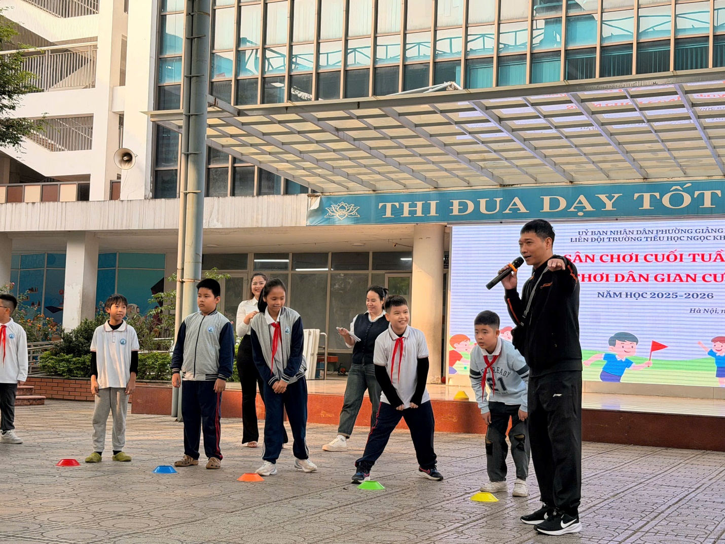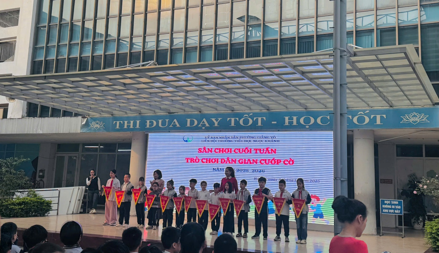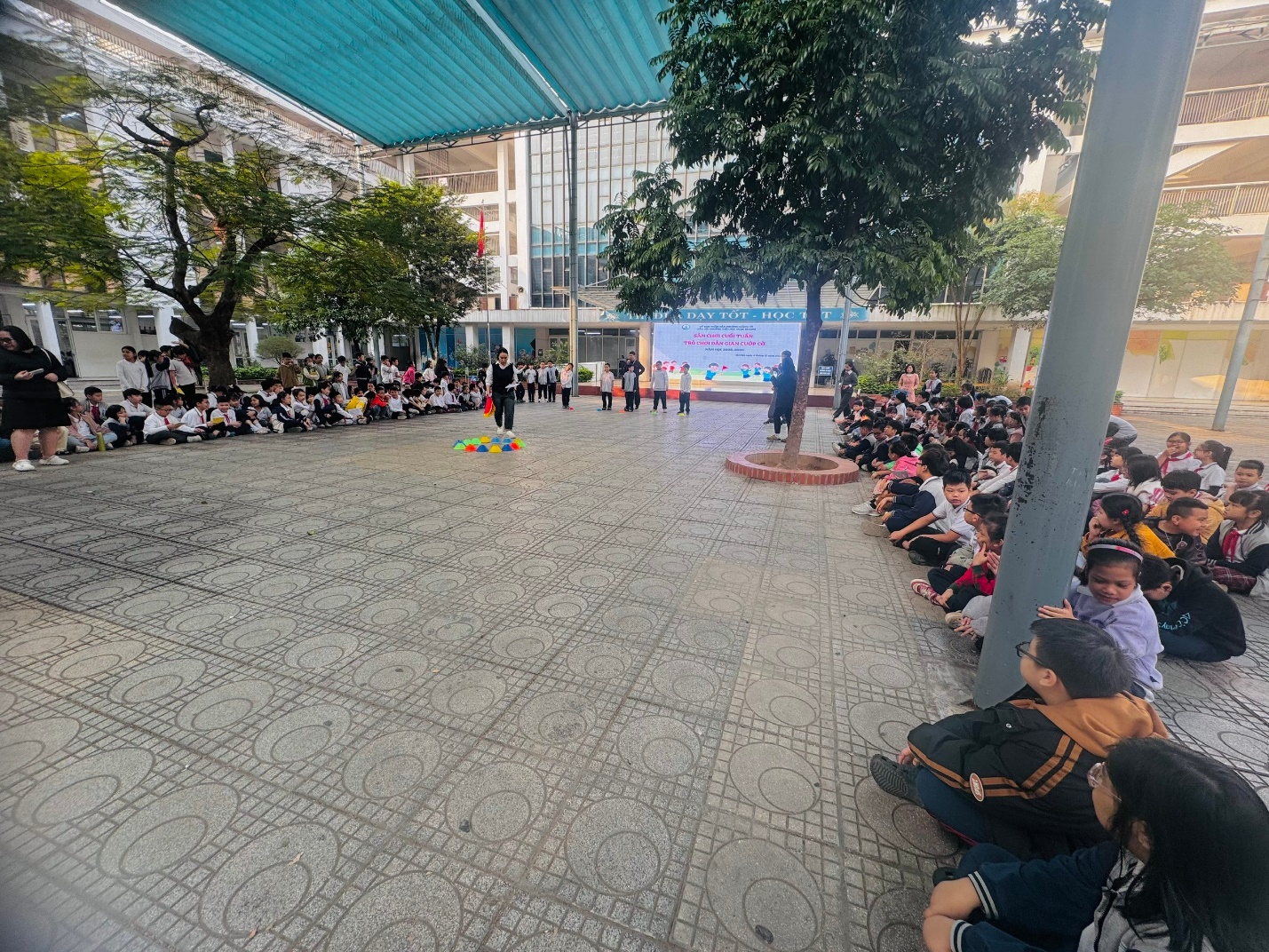 Sáng thứ Hai, sau tiết sinh hoạt dưới cờ các em học sinh khối 4 đã hào hứng tập trung tại sân trường để tham gia trò chơi dân gian cướp cờ. Trò chơi cướp cờ là một trò chơi dân gian phổ biến trong các hoạt động vui chơi, đặc biệt là trong các sự kiện ngoại khóa của các trường học và các lễ hội dân gian. Trò chơi này yêu cầu sự linh hoạt, sự nhanh nhẹn và chiến thuật của người chơi. Các em học sinh chia thành hai đội, tận dụng chiến thuật và sự linh hoạt để chiến thắng đối thủ và giành lấy lá cờ quý. Trò chơi này không chỉ giúp các em rèn luyện sự tập trung và sự phối hợp nhóm mà còn thú vị và mang tính giáo dục cao. Dưới đây là hình ảnh của các em học sinh hào hứng tham gia trò chơi