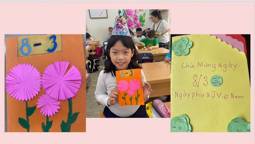 Dưới sự hướng dẫn của cô giáo, ngày 6/3 các bạn học sinh lớp 3A3 tổ chức nhiều hoạt động như cùng nhau tìm hiểu về nguồn gốc ngày 8/3, tham gia đố vui về các nữ anh hùng dân tộc, các bạn còn vẽ tranh, làm bưu thiếp, văn nghệ rất tưng bừng. Qua đó, các bạn thêm hiểu và trân trọng những giá trị văn hóa, truyền thống của dân tộc và ý thức vun đắp, gìn giữ và phát huy những truyền thống tốt đẹp.