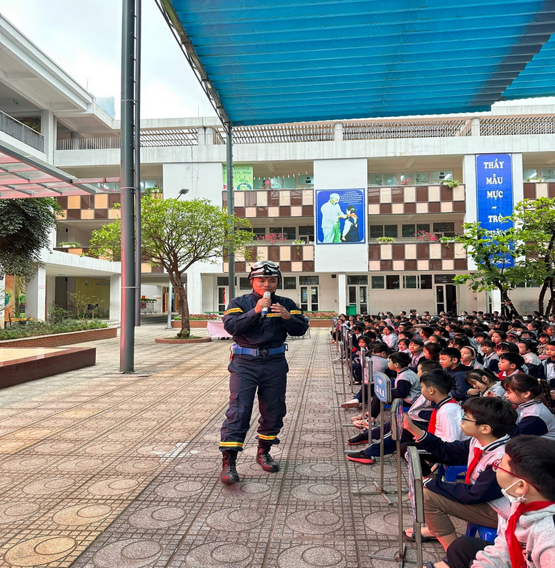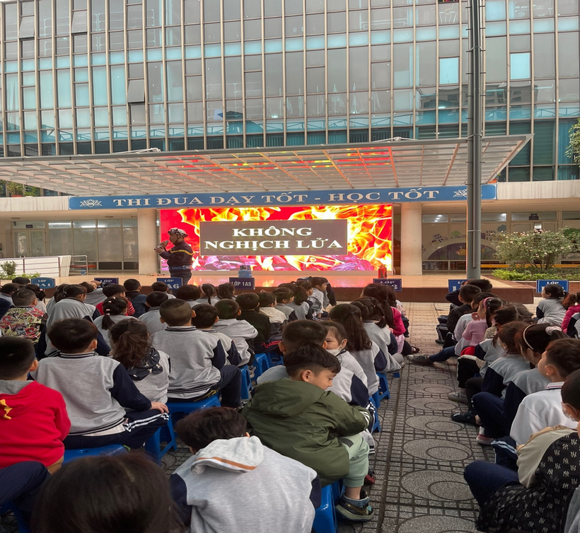 Tại buổi Giáo dục kĩ năng, cán bộ, giáo viên nhà trường cùng toàn thể các em học sinh đã được các chiến sĩ phòng cảnh sát PCCC truyền đạt những kiến thức, kỹ năng, những nguyên nhân gây ra cháy nổ và một số biện pháp phòng cháy chữa cháy. Dưới đây là một số hình ảnh các con lớp 1A2 tham gia buổi Giáo Tuyên truyền phòng cháy, chữa cháy và cứu nạn cứu hộ: