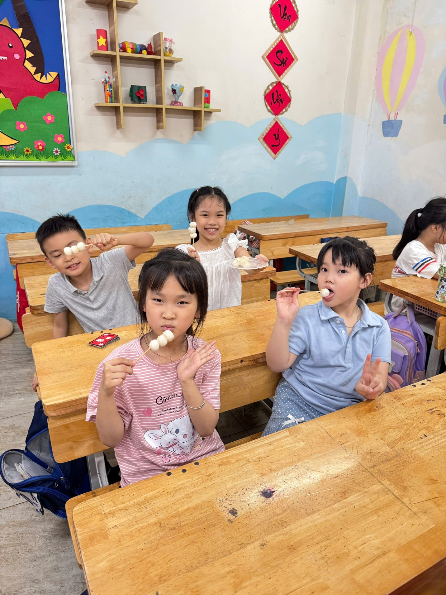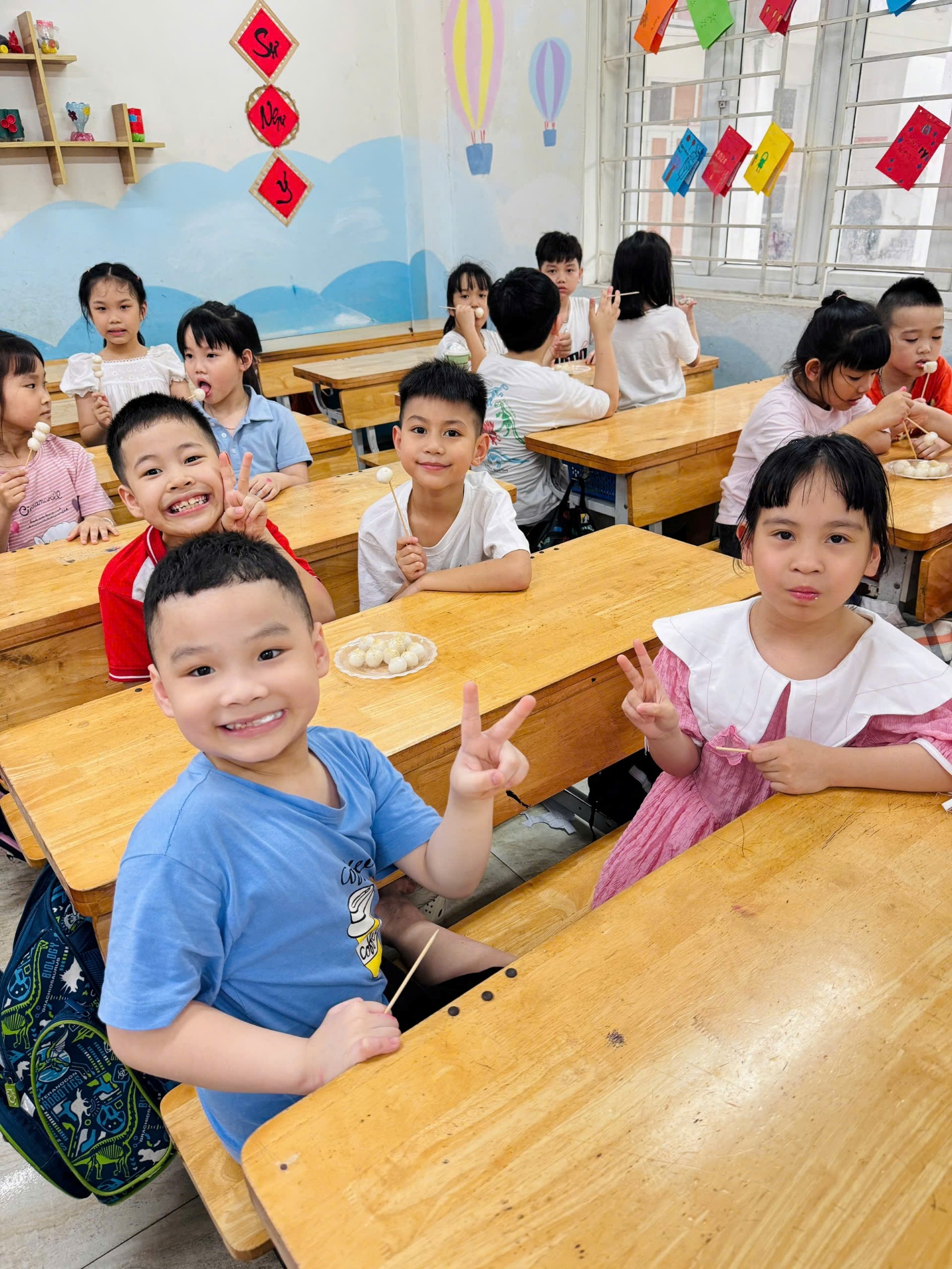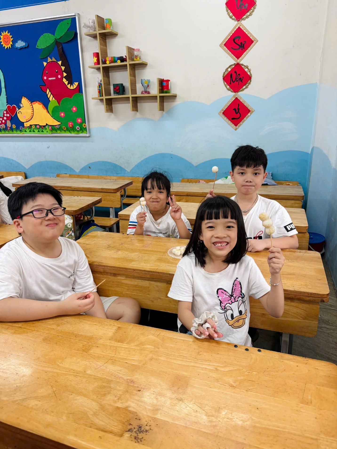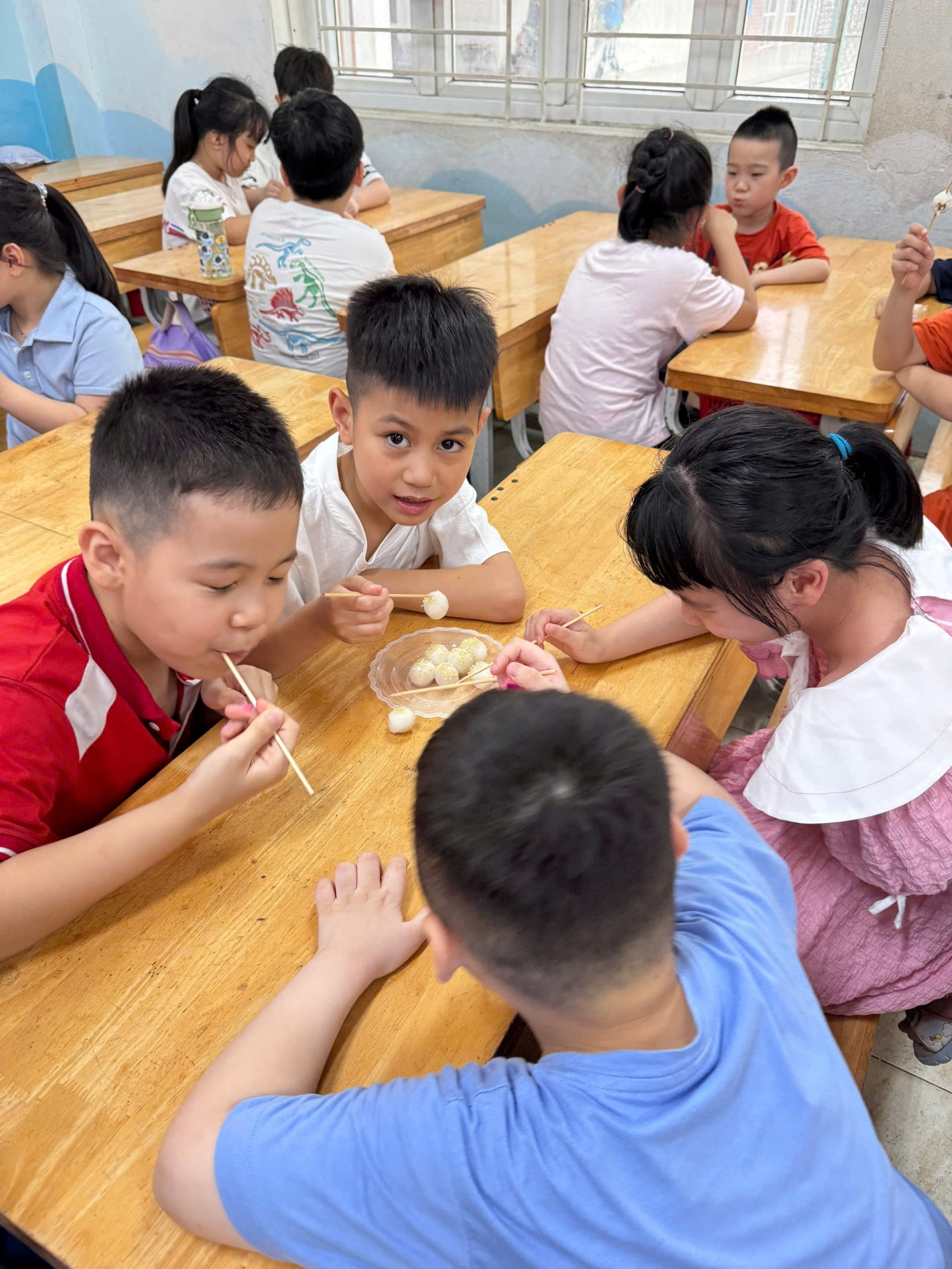Công đoạn luộc bánh diễn ra trong sự hồi hộp. Khi những viên bánh tròn trịa nổi lên mặt nước và được vớt ra bát, rắc thêm chút vừng thơm phức, cả lớp học như tràn ngập hương vị ngọt ngào. Cùng nhau thưởng thức những viên bánh trôi nóng hổi do chính tay mình làm ra, các em không chỉ cảm nhận được vị ngọt của đường phèn, vị dẻo của gạo nếp mà còn cảm nhận được niềm vui của sự sẻ chia.