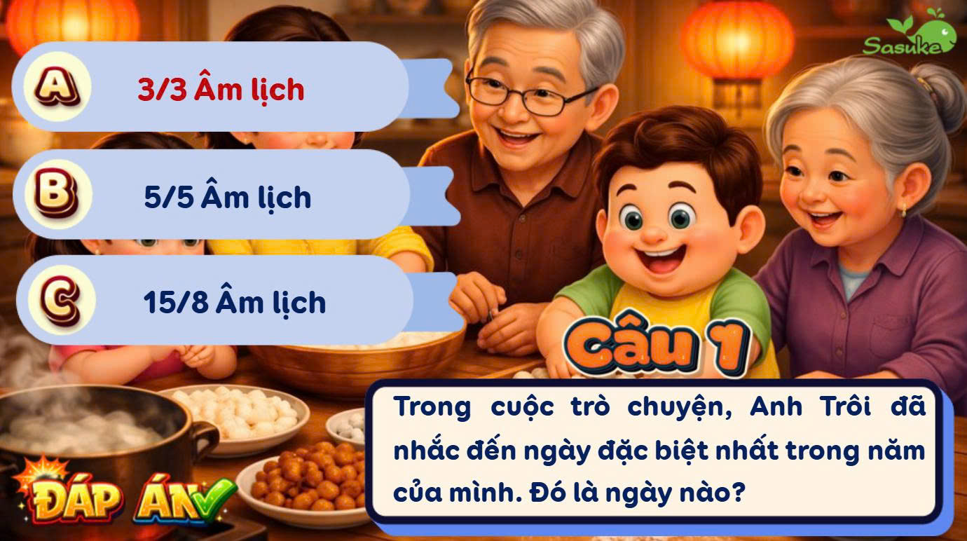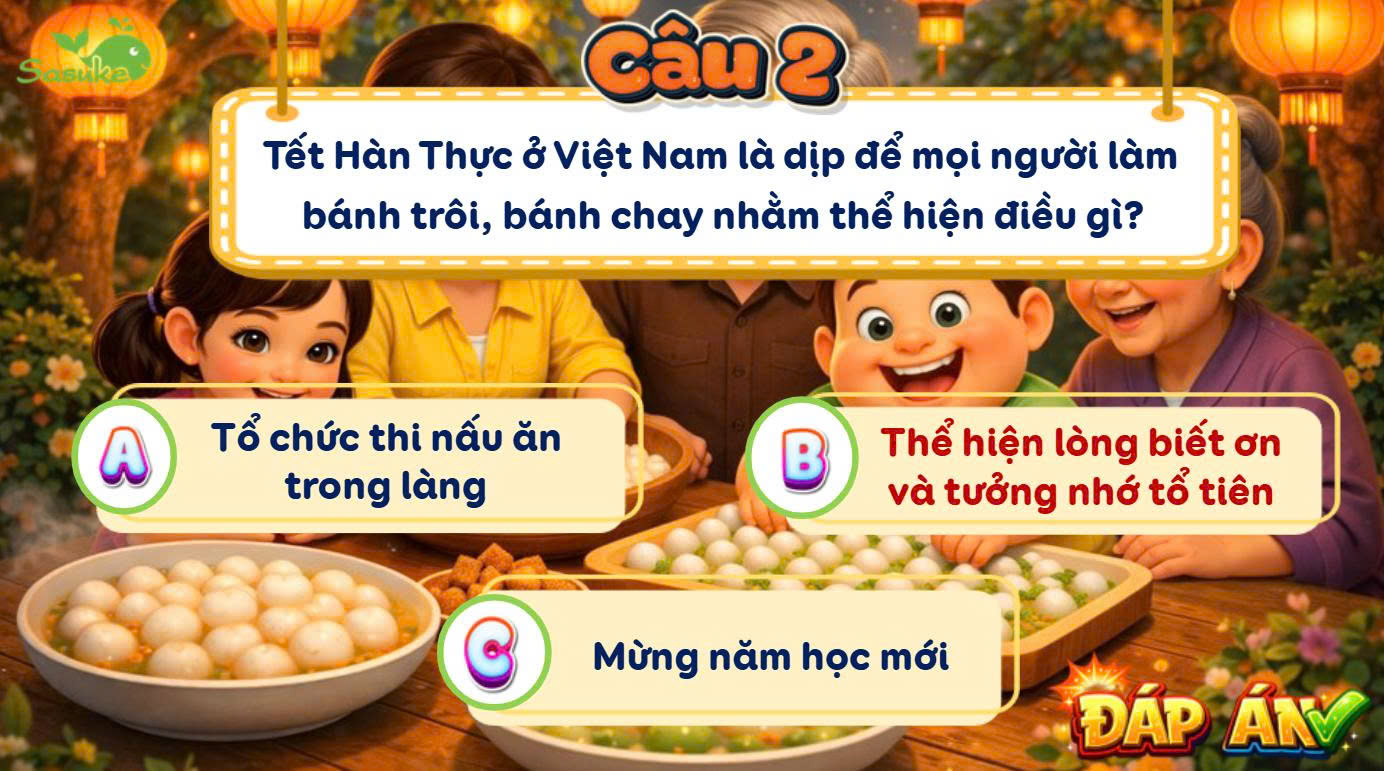 Mở đầu tiết học, các em học sinh được tham gia vào trò chơi giải đố trắc nghiệm đầy hào hứng. Những câu hỏi về nguồn gốc, ý nghĩa của ngày Tết Hàn Thực (mùng 3 tháng 3 âm lịch) được các em phản hồi rất sôi nổi. Qua những thước phim tư liệu ngắn sinh động, các bạn nhỏ đã hiểu hơn về truyền thống "uống nước nhớ nguồn" và lý do vì sao món bánh trôi, bánh chay lại trở thành biểu tượng không thể thiếu trong dịp này.
