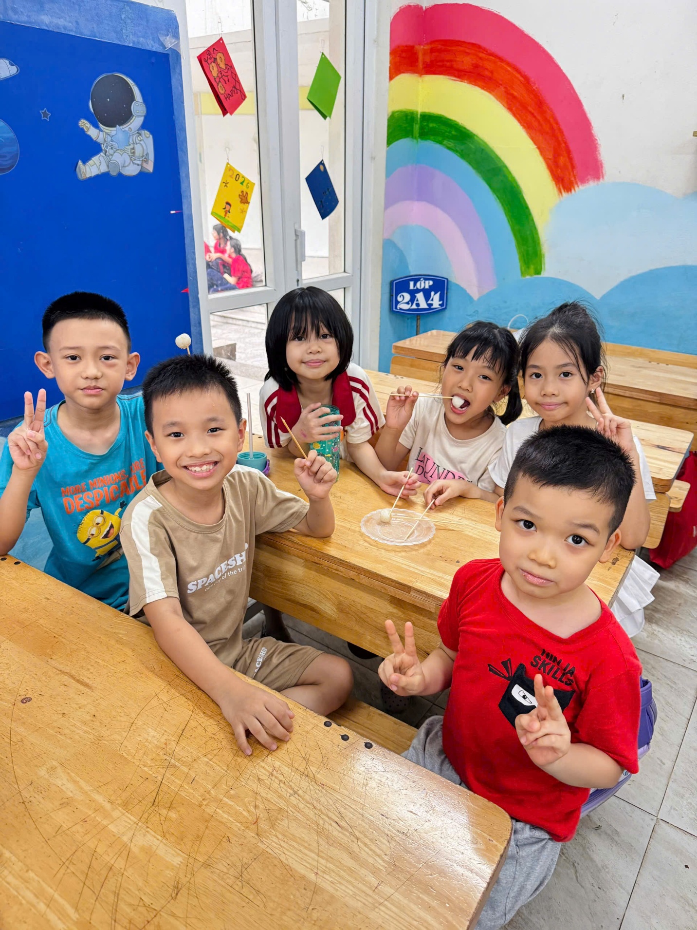 Chiều nay, thứ Năm ngày 16/04/2026, các bạn nhỏ khối lớp 2 đã có một tiết học Kĩ năng sống vô cùng đặc biệt và đáng nhớ. Không gian lớp học thường ngày bỗng trở nên rộn ràng hơn bao giờ hết khi các em được tự tay chuẩn bị những viên bánh trôi trắng ngần để tìm hiểu về nét đẹp truyền thống của ngày Tết Hàn Thực.