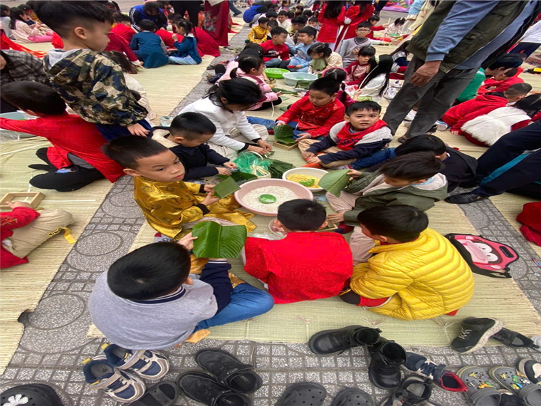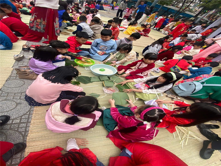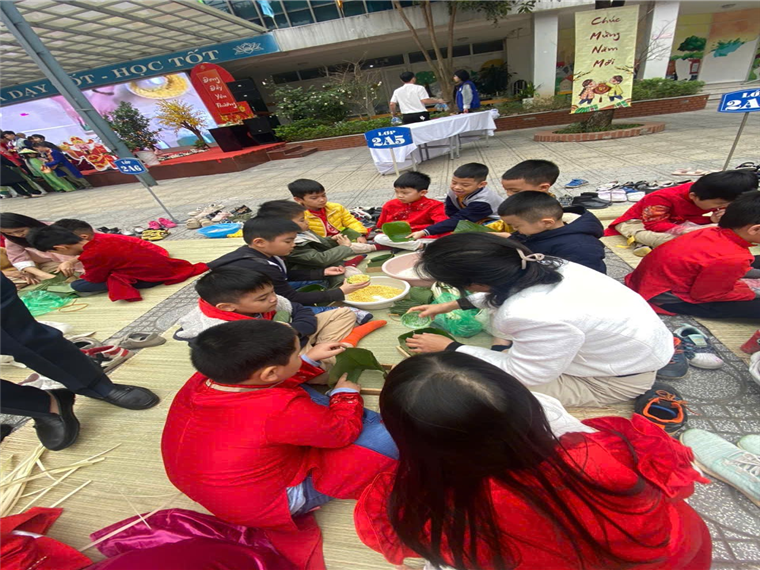Sau khi tìm hiểu về cách gói bánh, từng học sinh lớp 2A5 được tự tay gói chiếc bánh chưng của riêng mình. Tuy những chiếc bánh ấy còn chưa được vuông vắn, chưa được đẹp nhưng các em rất vui. Bên cạnh đó các em học sinh lớp 2A5 còn được tham gia vào các trò chơi dân gian, trả lời các câu đố vui về chủ đề ngày Tết, thi giã bánh giầy, rung chuông vàng, tự tham quan và mua sắm ở các gian hàng…