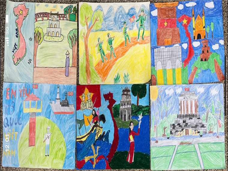 Trong đó, các em học sinh lớp 5A7 đã vô cùng hào hứng, tích cực tham gia cuộc thi vẽ tranh theo chủ đề “Em yêu Tổ quốc Việt Nam”. Với tình yêu với đất nước, con người Việt Nam, các em đã tái hiện hình ảnh các tấm gương anh hùng, liệt sĩ; ca ngợi chiến công vẻ vang, sự kiện lịch sử trọng đại của đất nước và các danh lam thắng cảnh, di tích lịch sử của đất nước và Thủ đô; tình yêu dành cho cuộc sống hòa bình, mong ước của thiếu nhi về đất nước Việt Nam hòa bình, phát triển,… qua các nét vẽ vô cùng đáng yêu. Những hình ảnh ngộ nghĩnh và màu sắc tươi sáng đã tạo nên những tác phẩm hội họa vô cùng đẹp mắt.