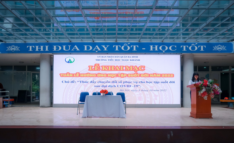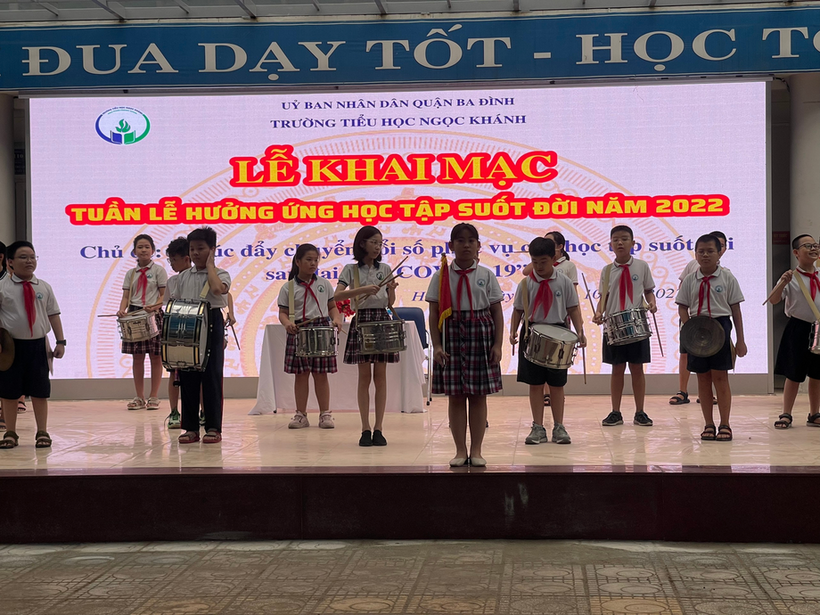 Sáng nay 3/10/2022 Trường Tiểu học Ngọc Khánh tổ chức chương trình hưởng ứng học tập suốt đời năm 2022 với chủ đề: Thúc đẩy chuyển đổi số phục vụ cho học tập suốt đời sau đại dịch COVID – 19.