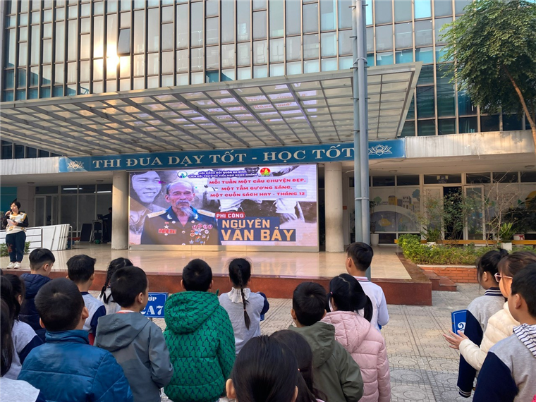 Thực hiện nhiệm vụ năm học 2024-2025, trường Tiểu học Ngọc Khánh đã tổ chức rất nhiều hoạt động trải nghiệm giúp học sinh có thêm hiểu biết về truyền thống vẻ vang của Quân đội Nhân dân Việt Nam, bồi dưỡng lòng tự hào về những chiến công, những phẩm chất tốt đẹp của bộ đội cụ Hồ. Đồng thời, giáo dục cho học sinh lòng biết ơn đối với những người đã và đang chiến đấu bảo vệ đất nước, hòa bình cho Tổ quốc. Xen kẽ trong chương trình chào cờ đầu tuần 16 – Mỗi tuần một câu chuyện đẹp, một tấm gương sáng, một cuốn sách hay – Tháng 12 là video về đại tá phi công anh hùng Nguyễn Văn Bảy. Qua đó, càng làm cho chương trình thêm phần long trọng, hào hùng.