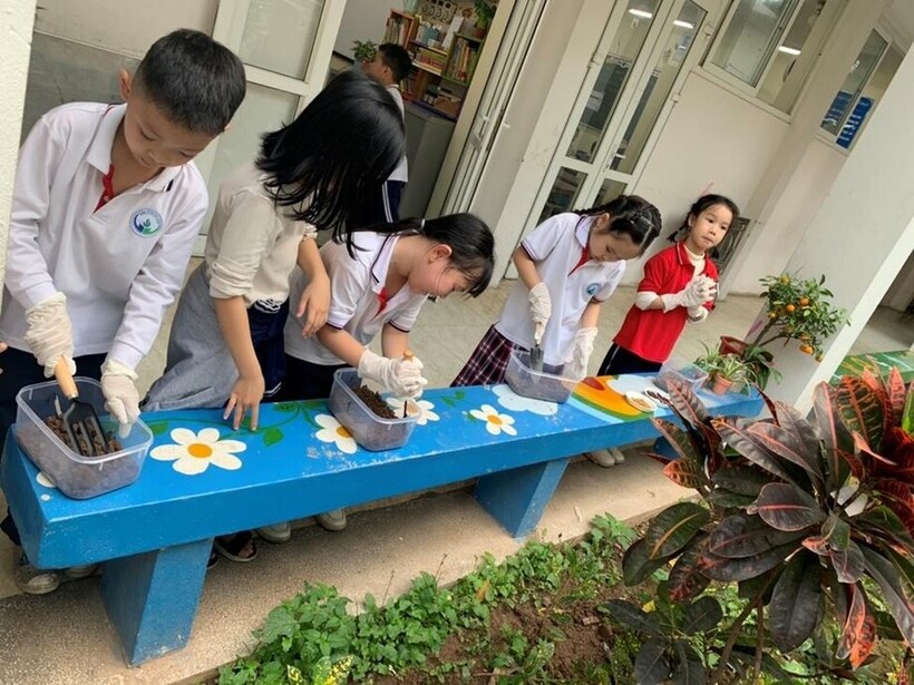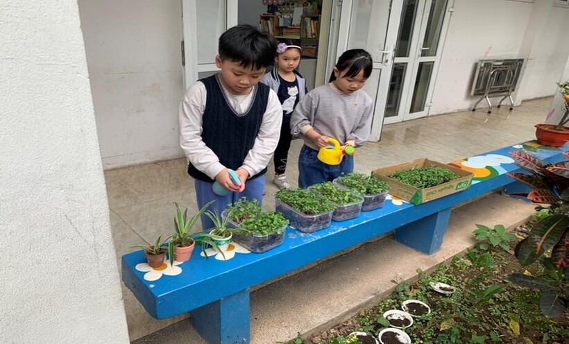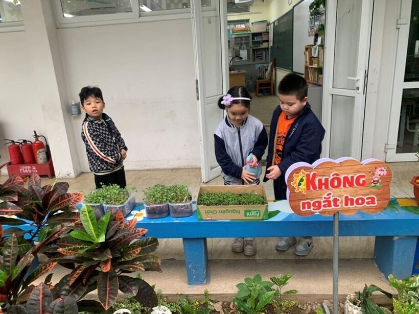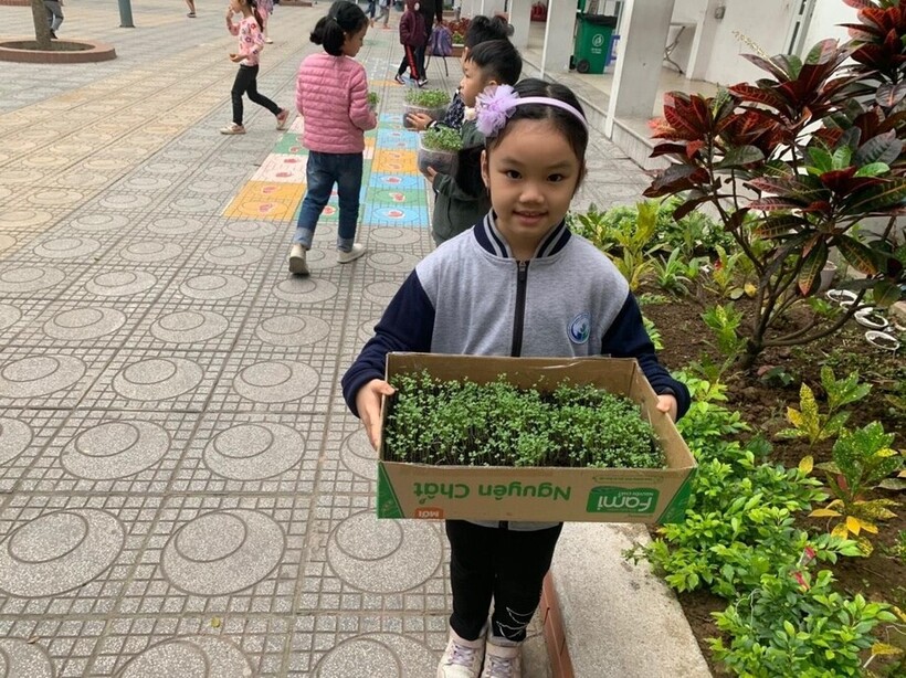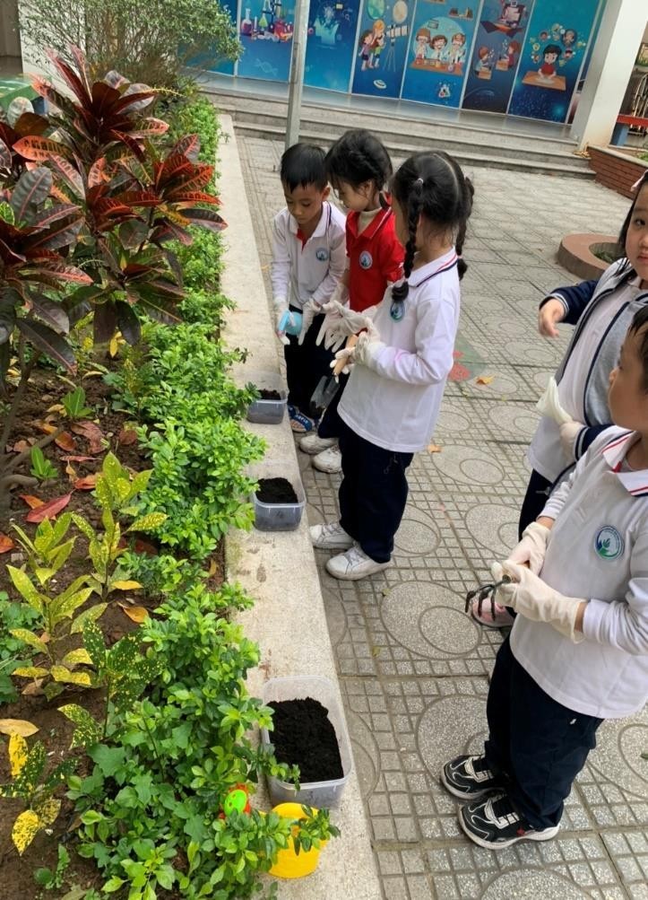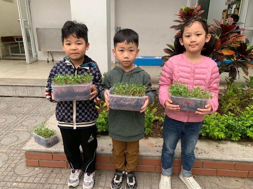 Các bạn còn rất vui mừng, phấn khởi khi được tự tay gieo hạt, trồng cây, tự chăm sóc để theo dõi cây non lớn lên từng ngày.