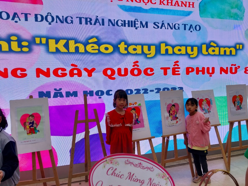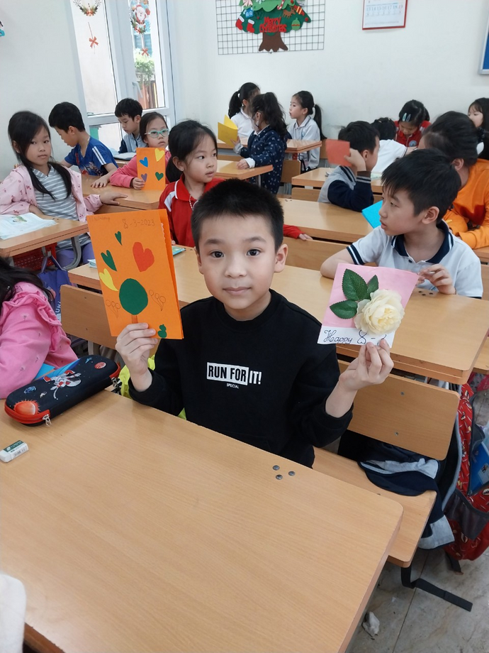 Để phát huy truyền thống đó, lớp 2A3 đã chào mừng Ngày Quốc tế Phụ Nữ 8 tháng 3 thông qua các hoạt động vô cùng bổ ích như cuộc thi ‘‘Khéo tay hay làm’’ do nhà trường tổ chức hay phần làm thiệp tặng mẹ, tặng bà…,trên lớp.