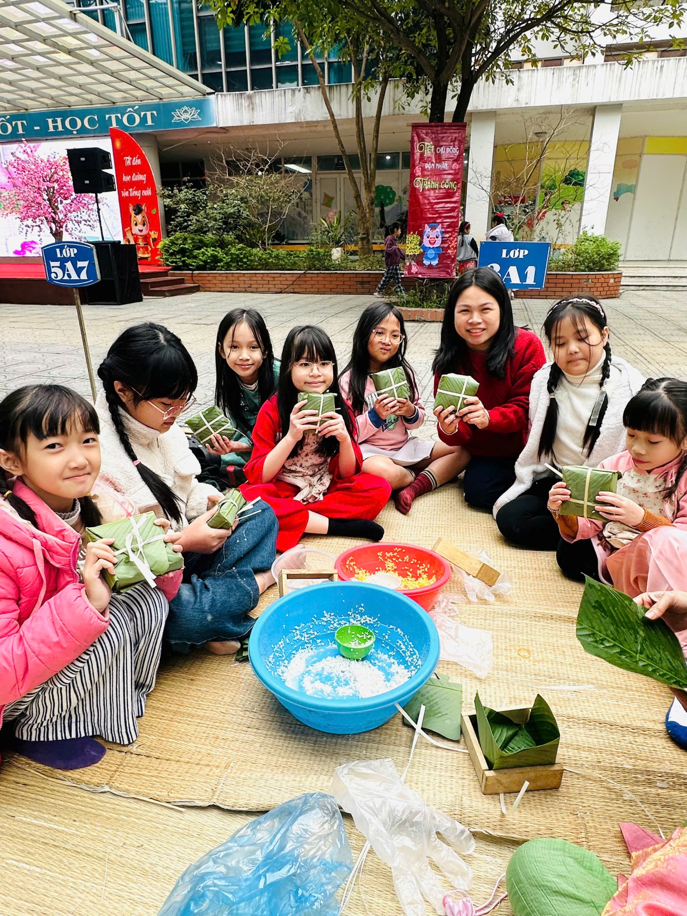 Sau phần sơ kết trang trọng, sân trường trở nên náo nhiệt hơn bao giờ hết với các hoạt động như gói bánh chưng, giã bánh dày và cuộc thi Rung chuông vàng đầy kịch tính. Các em học sinh được trực tiếp tham gia gói bánh, từ đong gạo, đong đỗ đến xếp lá, buộc lạt, qua đó hiểu thêm về ý nghĩa của Tết cổ truyền và trân trọng giá trị lao động. Tiếng chày giã bánh rộn vang, tiếng cười nói xen lẫn sự háo hức đã tạo nên một bức tranh xuân thật ấm áp.