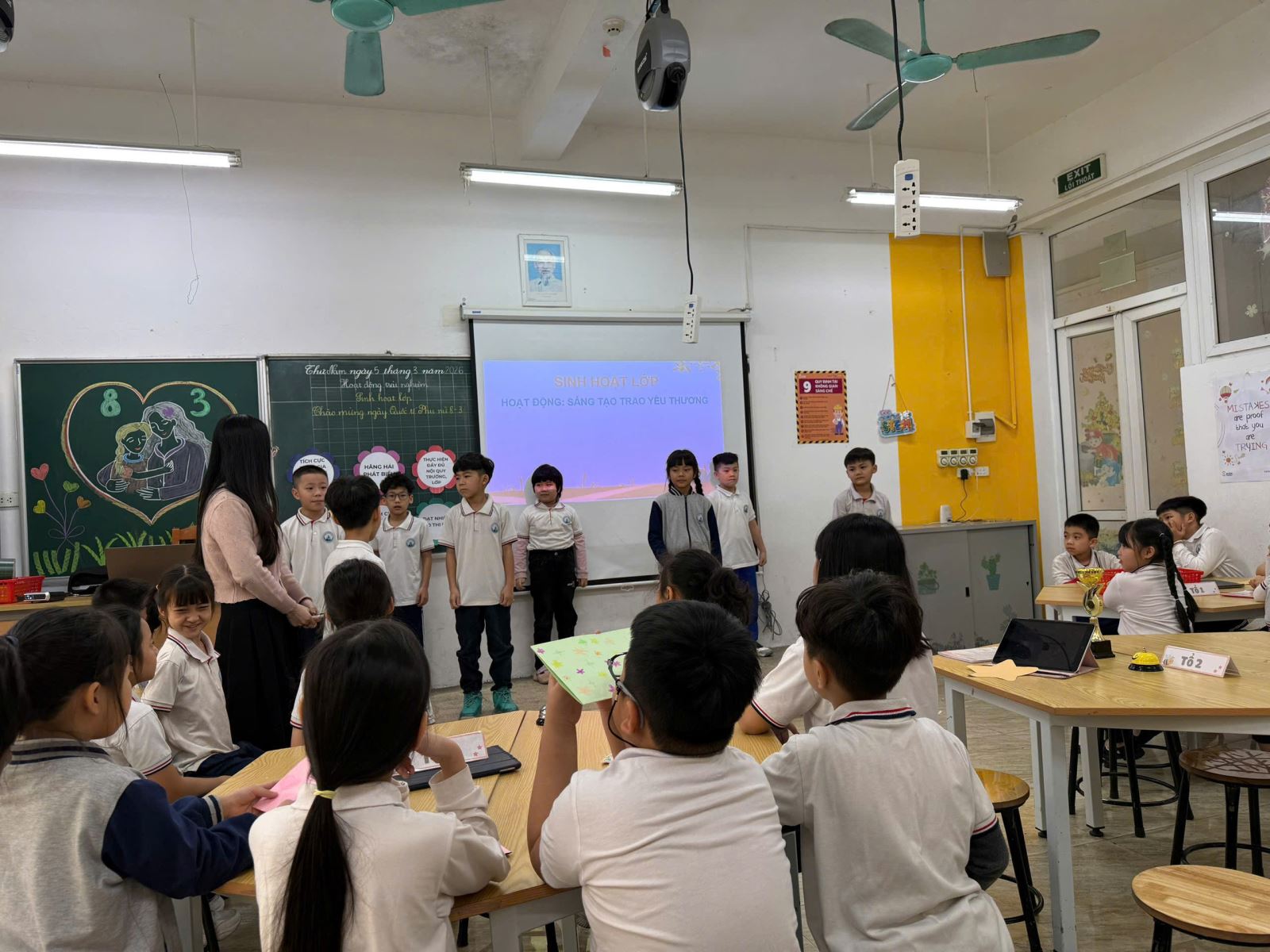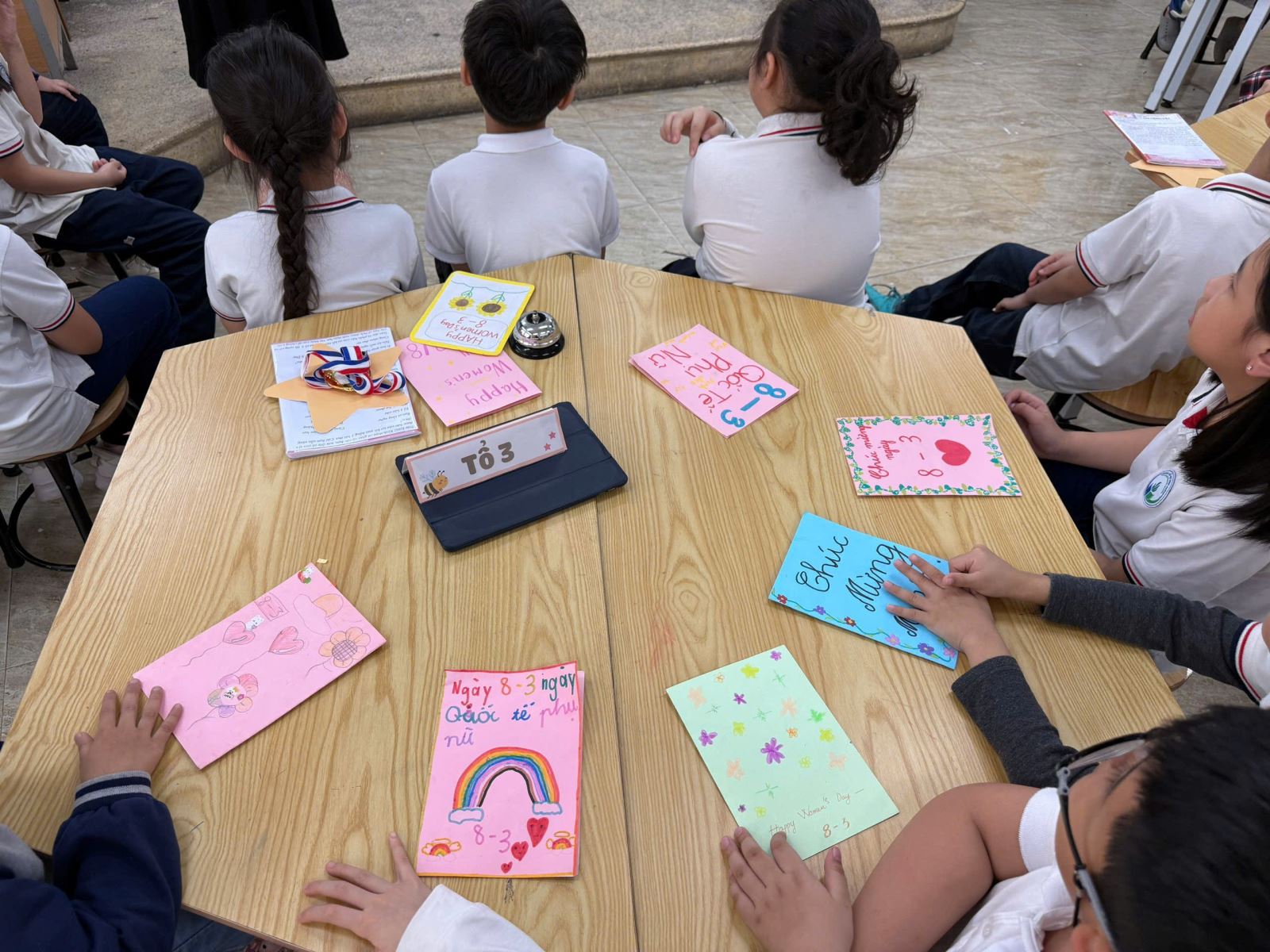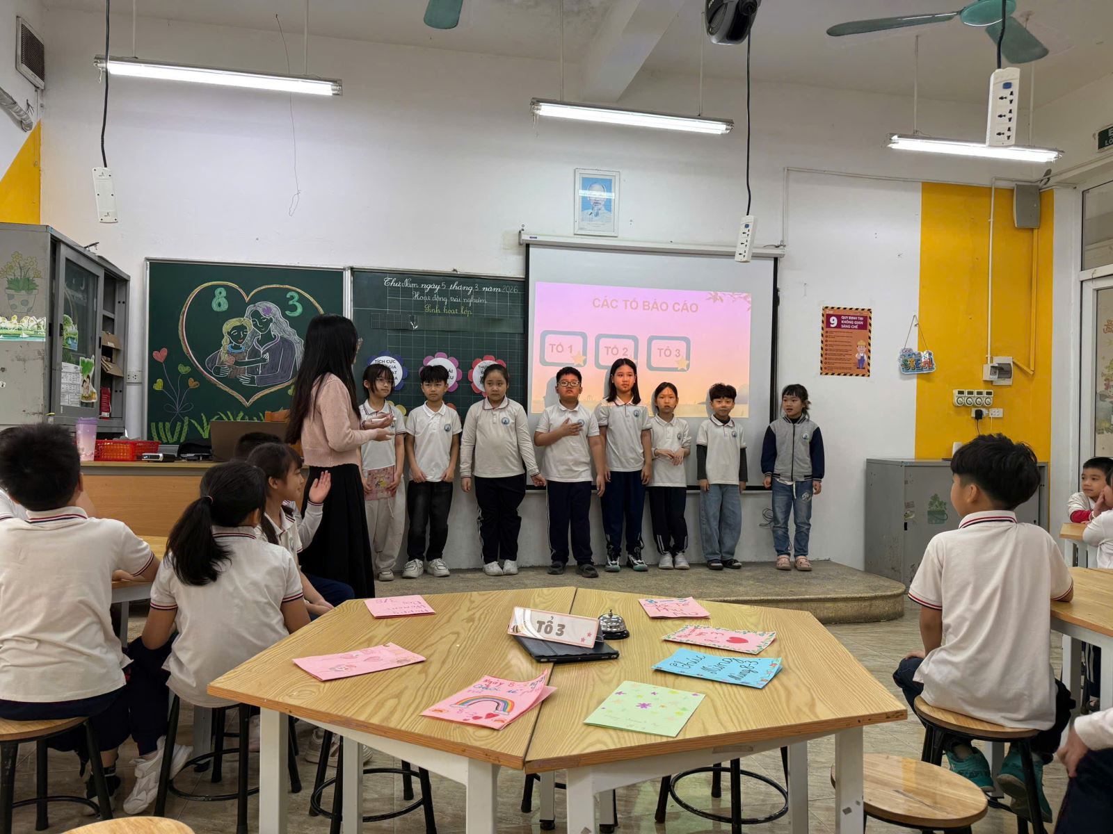 Các con được tham gia nhiều hoạt động phong phú như làm vòng sáng tác thơ, làm thiệp, đóng kịch và chia sẻ suy nghĩ về mẹ – người phụ nữ thân yêu nhất trong cuộc đời mình. Đặc biệt, tiểu phẩm nhỏ về câu chuyện cô bé chưa ngoan nhưng biết nhận ra sự vất vả của mẹ đã khiến cả lớp lắng lại. Qua đó, các con hiểu rằng tình yêu thương không chỉ thể hiện bằng lời nói mà còn bằng những hành động quan tâm mỗi ngày.