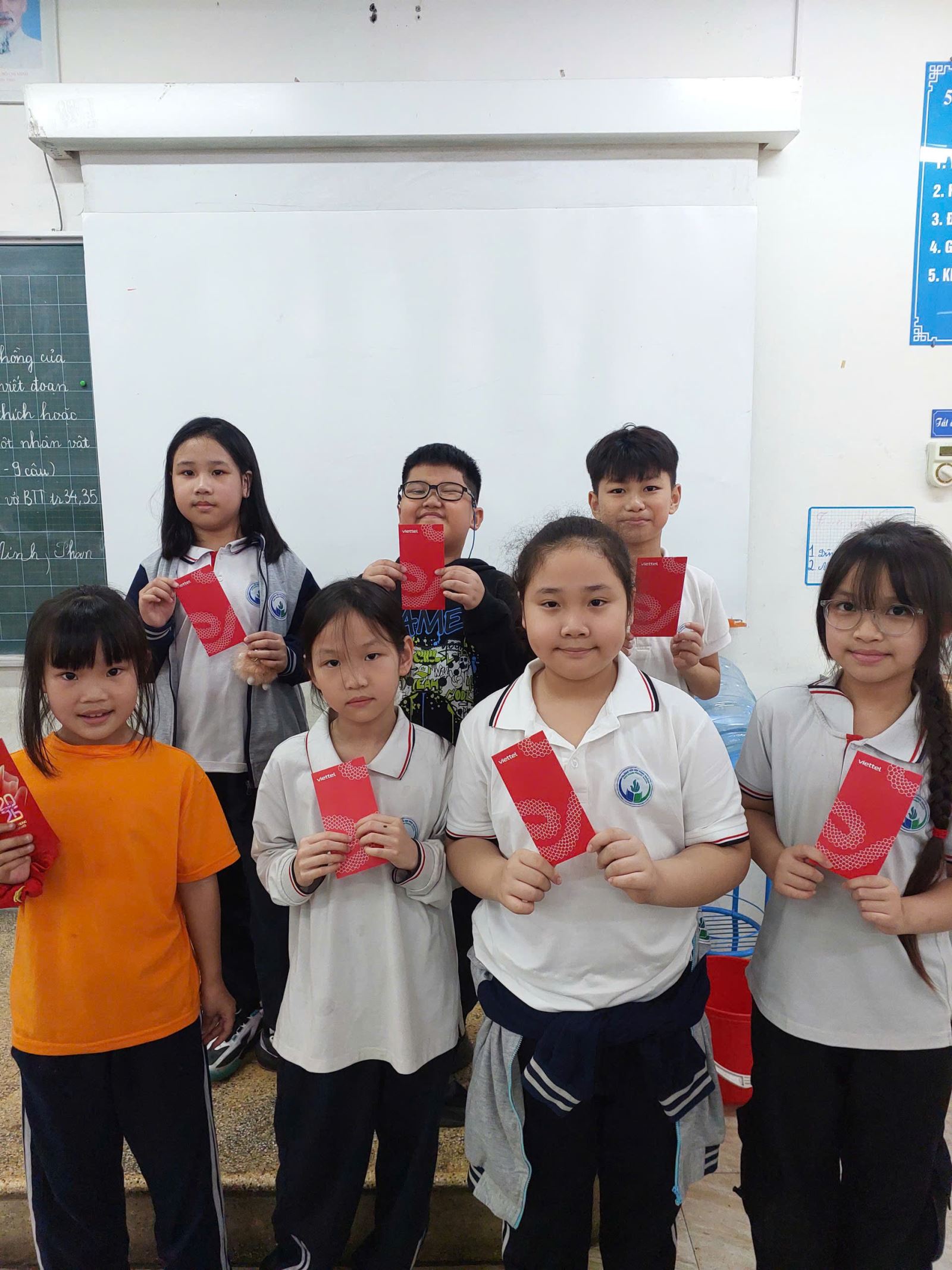 Không khí xuân rộn ràng đã ngập tràn lớp 3A2 trong ngày đầu học sinh quay trở lại trường học. Cô giáo trao từng bao lì xì đỏ thắm kèm theo lời chúc may mắn, chăm ngoan học giỏi cho các em. Ánh mắt trong veo, nụ cười rạng rỡ của các em chính là hình ảnh đẹp nhất, mở đầu cho một năm mới tràn đầy niềm vui và hy vọng.