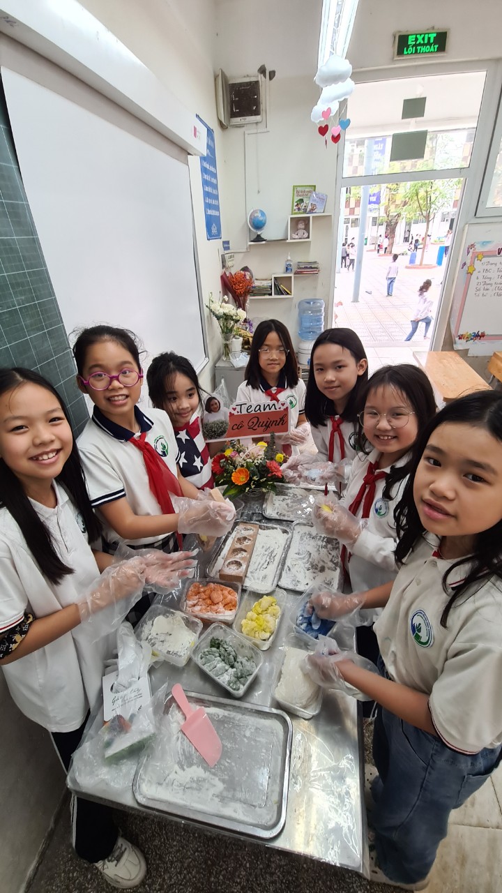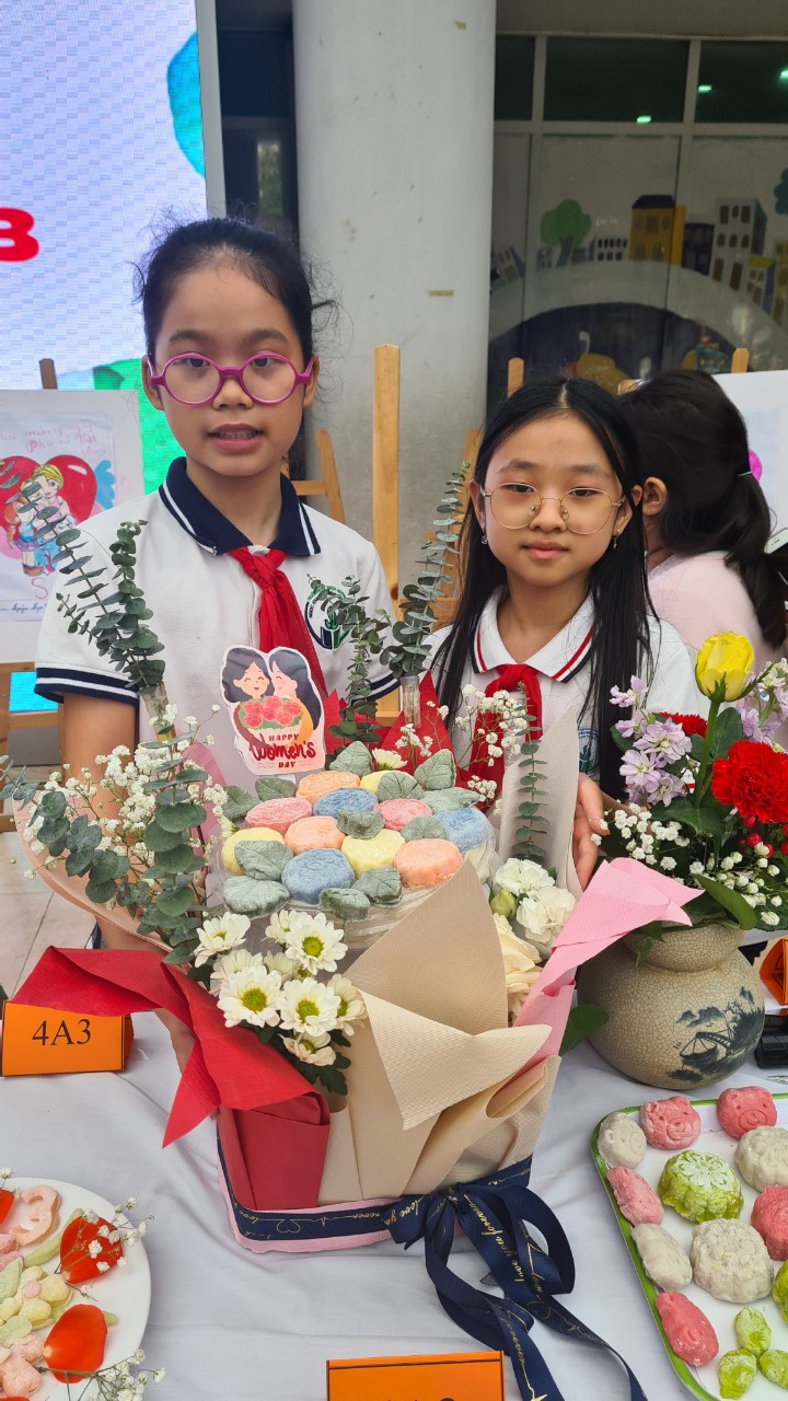 Chiều ngày 8/3, cô giáo và Phụ huynh học sinh lớp 4A2 cũng tổ chức cho các con tìm hiểu ý nghĩa ngày Quốc tế Phụ nữ, các bạn nữ được thể hiện sự khéo tay của mình qua hoạt động làm và trang trí bánh dẻo. Hoạt động ý nghĩa này còn để lại trong lòng và trên gương mặt các em sự hân hoan về kết quả đạt được. Các em được thưởng thức sản phẩm do chính mình làm ra từ những đôi bàn tay khéo léo, các em hiểu được ý nghĩa của lao động và thành quả của lao động.