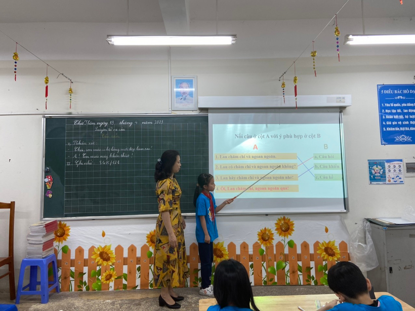 Vừa qua, cô và trò lớp 4a3 đã cùng nhau hoàn thành xuất sắc tiết dạy thanh tra môn luyện từ và câu bài “Câu cảm”. Cô giáo Lê Mai Vân đã áp dụng nhiều phương pháp dạy phong phú, mới mẻ giúp các em học sinh nhanh chóng nắm bắt được nội dung bài học.