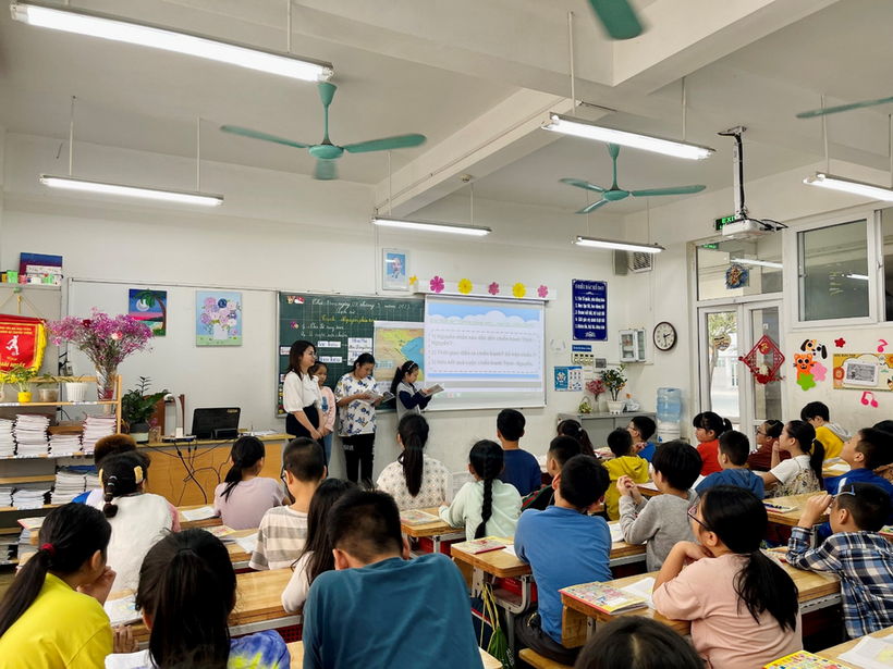 Tới dự tiết chuyên đề có đồng chí Lê Thu Thủy -Hiệu trưởng nhà trường cùng hai đồng chí phó hiệu trưởng và tập thể giáo viên Khối 4. Lịch sử là môn học khó đối với các con học sinh lớp 4 vì vậy nhà trường rất quan tâm đến môn học này. Cô giáo đã chú trọng đến việc cho học sinh tự tìm hiểu kiến thức thông qua các tài liệu sưu tầm và hoạt động nhóm. Các giai đoạn lịch sử được tái hiện sinh động thông qua tiết dạy. Nhờ vận dụng sáng tạo các phương pháp và hình thức dạy học tích cực, cô Đỗ Trà My đã lôi cuốn các em học sinh say sưa tham gia tiết học.