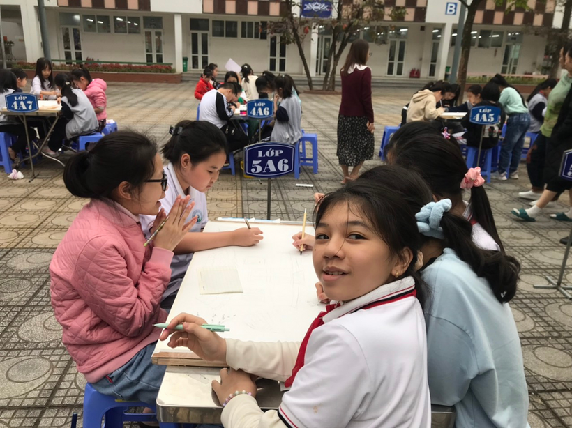 Căn cứ vào những yêu cầu về nội dung, hình thức & thời gian thể hiện mà Ban tổ chức đề ra, nhóm “họa sĩ nhí” của lớp 5A6 gồm các bạn: Nguyễn Ngân An, Bùi Ngọc Trâm Anh, Nguyễn Linh Chi, Nguyễn Khánh Ngân, Trần Anh Thư và Lê Bảo Uyên đã lên kế hoạch, chuẩn bị đồ dùng, phác thảo và luyện tập: