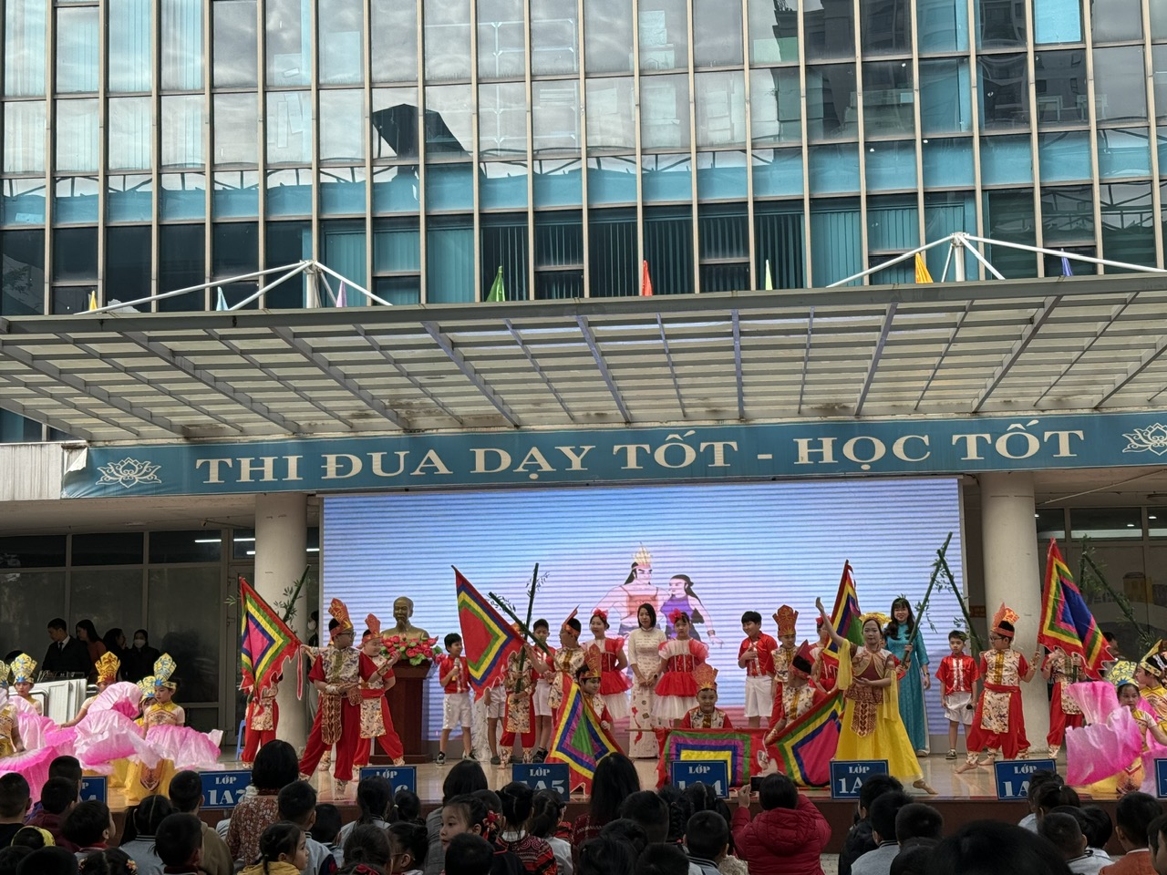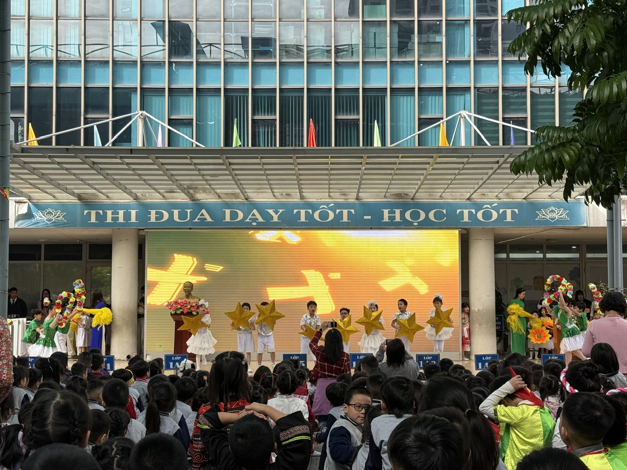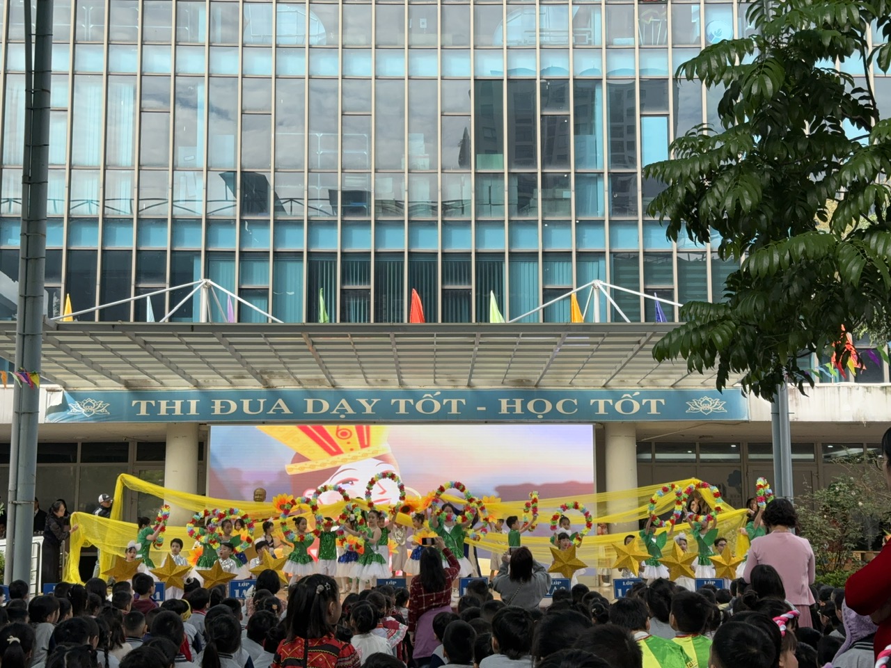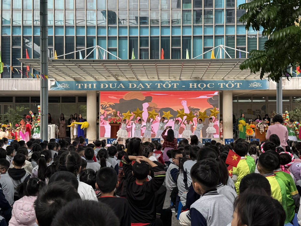 Ngoài các hoạt động thi đua, các con còn được tham gia buổi xem chương trình kỷ niệm 20/11 dưới sân trường. Chương trình diễn ra sôi nổi với nhiều tiết mục đặc sắc như múa, hát, kịch và các màn biểu diễn của thầy cô, anh chị học sinh. Các con chăm chú theo dõi, thích thú vỗ tay theo từng tiết mục và cảm nhận rõ không khí trang trọng nhưng cũng rất vui tươi của ngày hội tri ân.