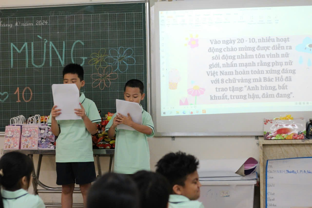 "Con chúc mẹ hạnh phúc… Con yêu mẹ nhất trên đời”. Đây là những lời chúc ngọt ngào các bạn nhỏ lớp 3A5, trường tiểu học Ngọc Khánh viết trên những tấm thiệp xinh để tặng bà, tặng mẹ nhân ngày Phụ nữ Việt Nam 20-10. Những lời chúc ngọt ngào đó chính là những tình cảm yêu thương tuyệt vời nhất của các bạn gửi đến bà và mẹ trong ngày đặc biệt của những người phụ nữ.
