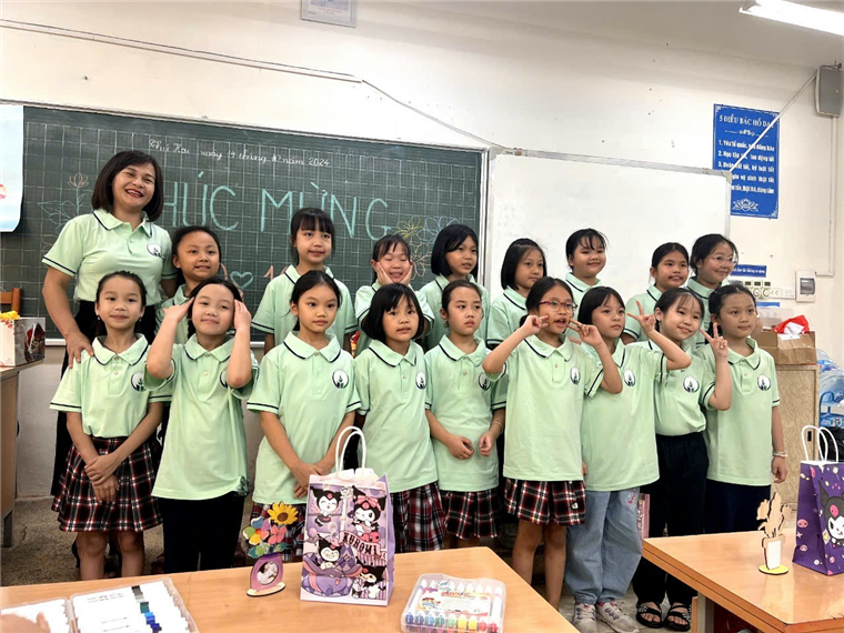Sau buổi học, mỗi bạn đã làm được một món quà xinh xắn, mang về tặng bà và mẹ bày tỏ lòng biết ơn sâu sắc. Cùng xem hình ảnh các bạn học sinh lớp 3A5 làm quà tặng bà, tặng mẹ nhé.