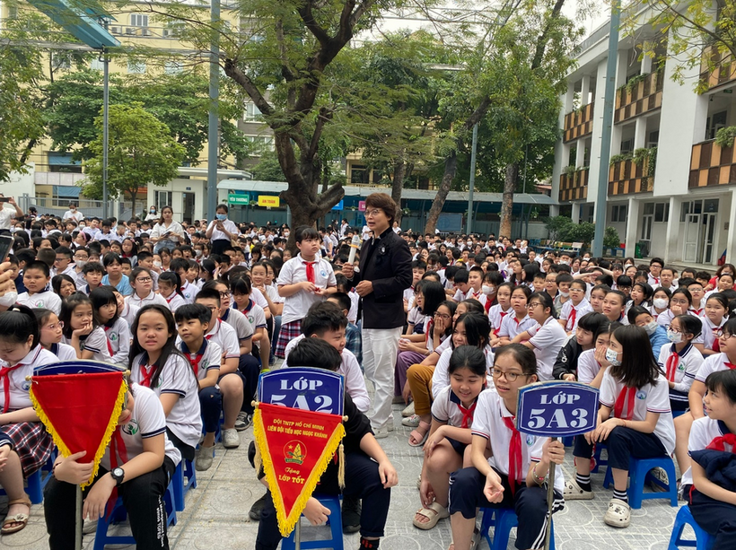 Không xả rác, biết nói lời cảm ơn, xin lỗi, trả lại của rơi cho người bị mất, vào lớp thuộc bài - ra lớp hiểu bài, chung tay bảo vệ môi trường... là những hoạt động thiết thực, ý nghĩa khi học sinh Trường TH Ngọc Khánh tham gia diễn đàn trẻ em “Nói lời hay - Làm việc tốt - Ứng xử văn minh”