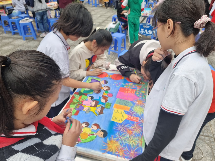 Trong bức tranh này chúng em không chỉ muốn vẽ những mảnh ghép màu sắc của mỗi gia đình trong dịp Tết đến xuân về mà còn muốn lan tỏa, tôn vinh truyền thống tốt đẹp của dân tộc ta. Bức tranh cũng thay cho lời chúc của tập thể 5A9 chúng em dành cho tất cả mọi người một năm Quý Mão luôn luôn hạnh phúc, bình an, may mắn và trọn vẹn yêu thương.