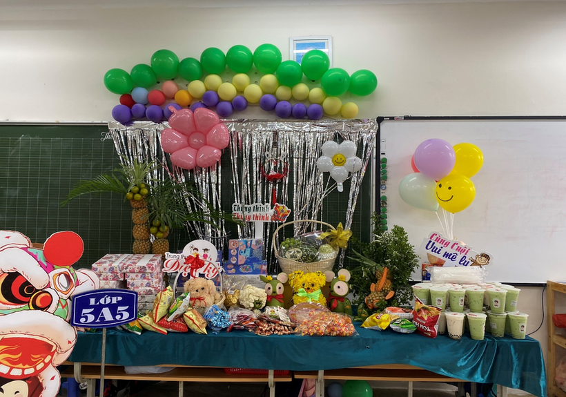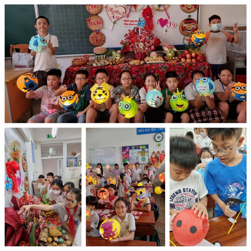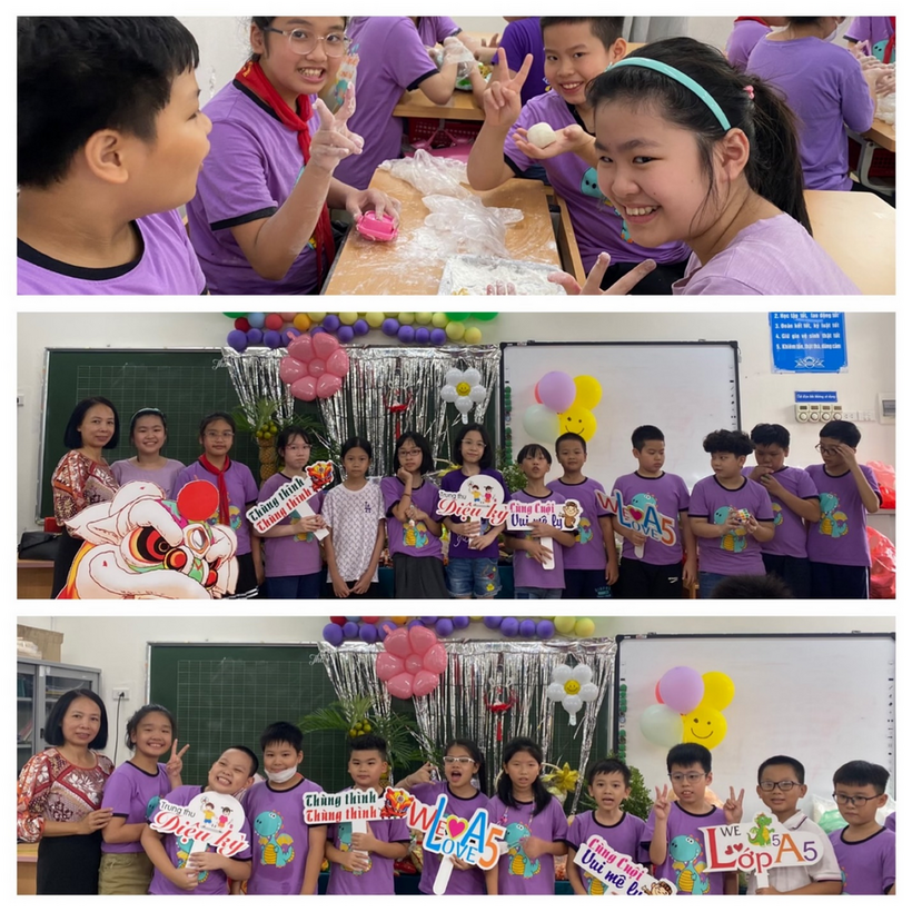 Hòa chung không khí đón Tết Trung thu của nhà trường thì tại từng lớp khối 5, Ban phụ huynh cùng với cô giáo chủ nhiệm đã tổ chức ngày hội “Vui Tết Trung Thu” trong sự náo nức của các em học sinh. Sau một thời gian dài học sinh không được đến trường thì năm nay không khí trung thu ở từng lớp thật tưng bừng và rộn rã. Các em đã có những phút giây vô cùng vui vẻ và bổ ích khi tham gia các hoạt động tại lớp. Dưới đây là một số hình ảnh trung thu của các lớp khối 5.